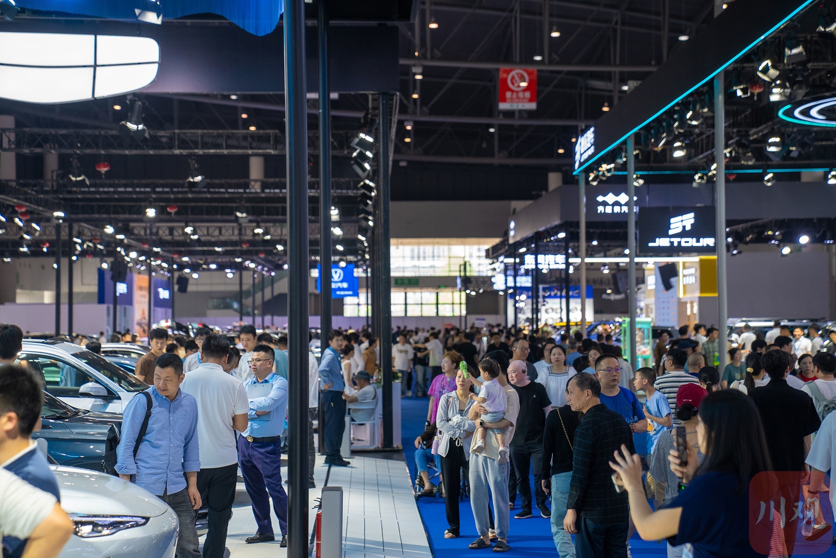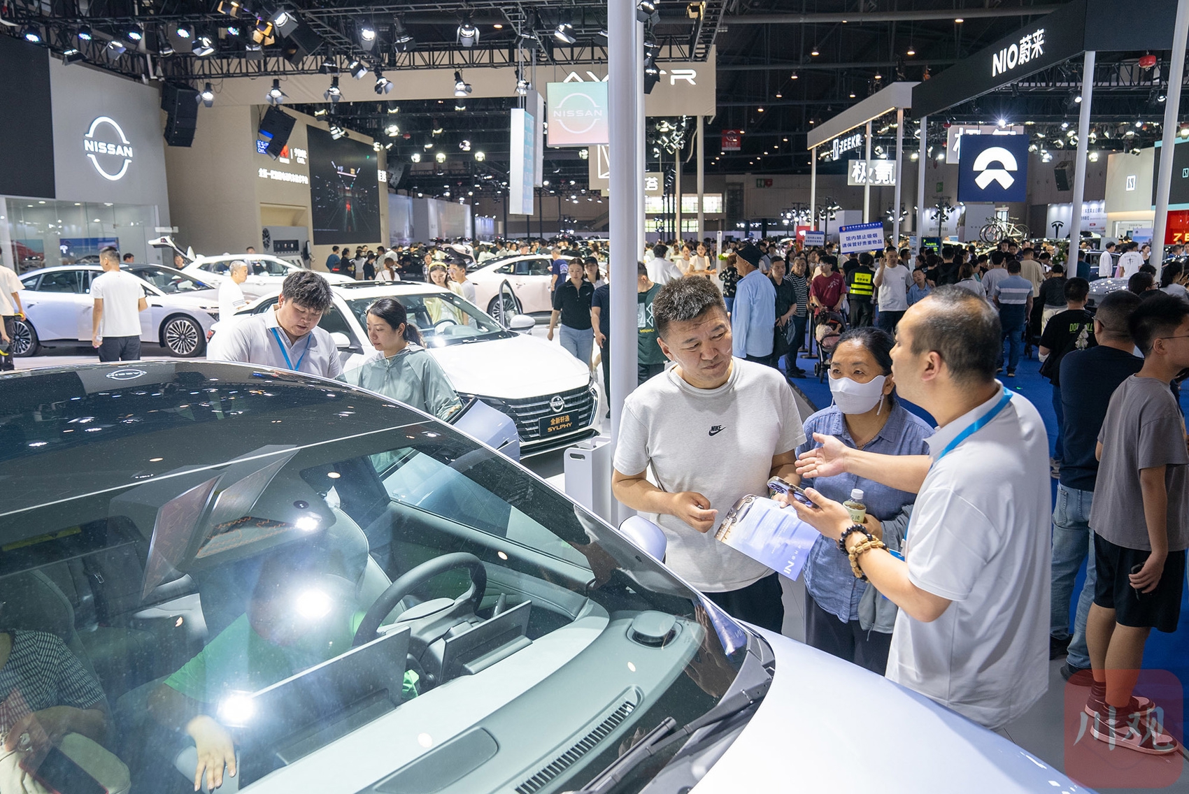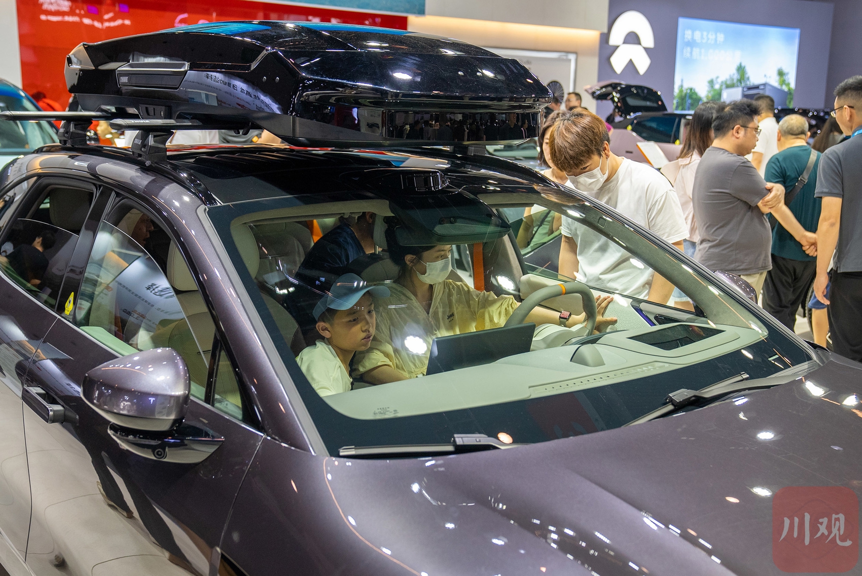 本届“西南车展”重点突出“新能源”“智能化”,多家汽车品牌纷纷展出多款最新车型,不少消费者在现场体验、试乘。