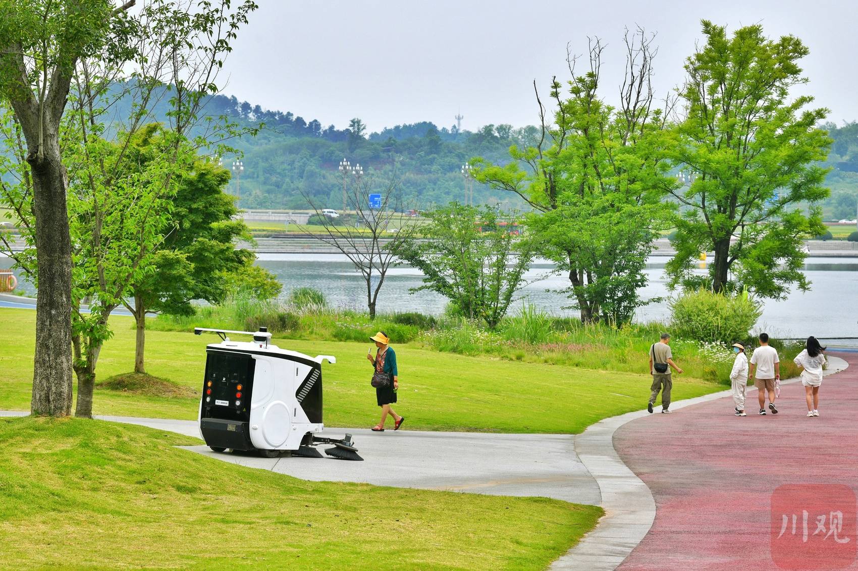 5月14日清晨7点,在成都兴隆湖绿道上,往日喜欢慢跑的市民丁小姐看到,一台呆萌可爱的扫地机器人正在绿道上缓慢前行,不时还有“正在作业,请避让!”的提示语音响起。