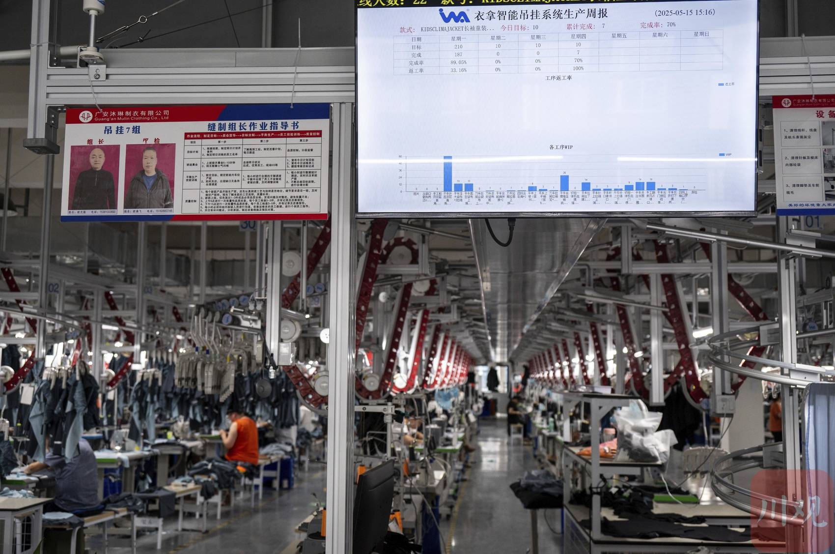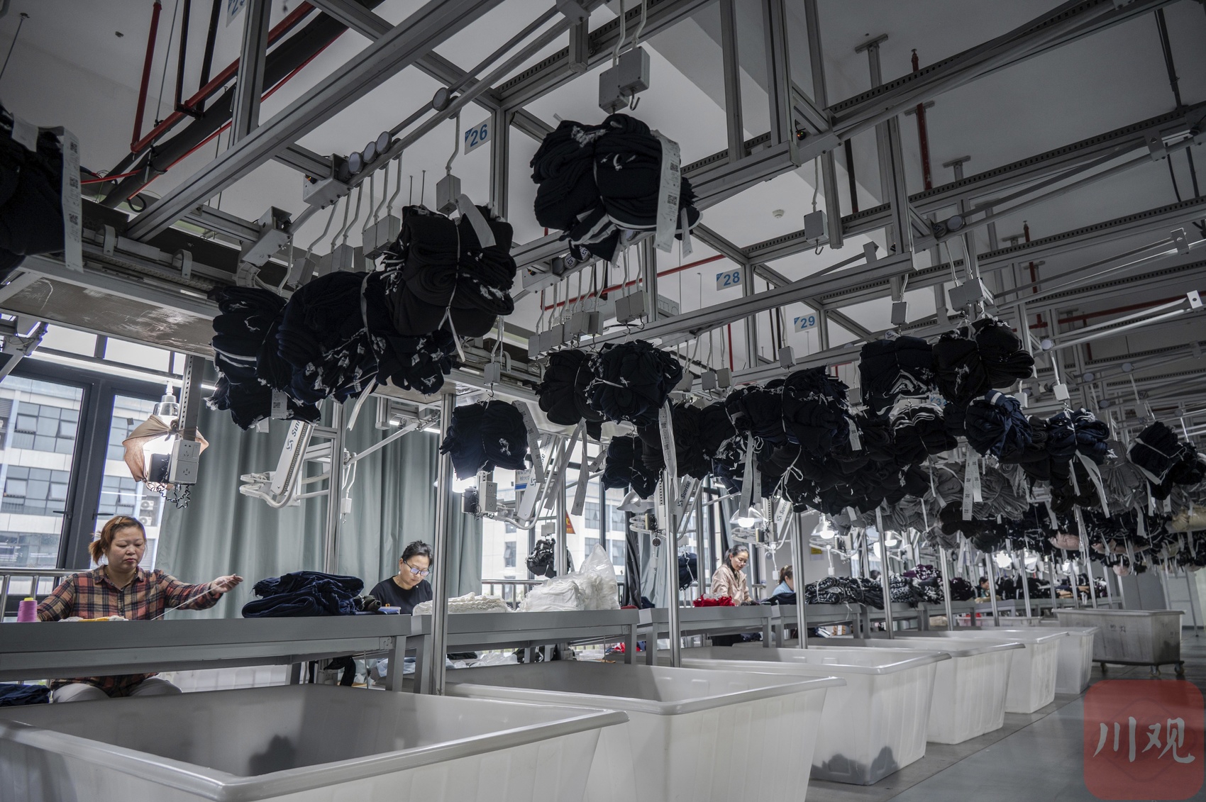 5月15日,走进位于广安市前锋工业园区的广安沐琳制衣有限公司车间,工人们正专注于成衣产品的熨烫、整型与包装。这批涵盖运动夹克、冲锋衣、长裤的服饰即将下线,发往国外市场。作为园区内智能生产的标杆企业,公司引入当下先进的智能自动化生产线,可根据客户多元化需求,精准生产各类运动休闲服饰,展现出“柔性智造”的强大适配能力。