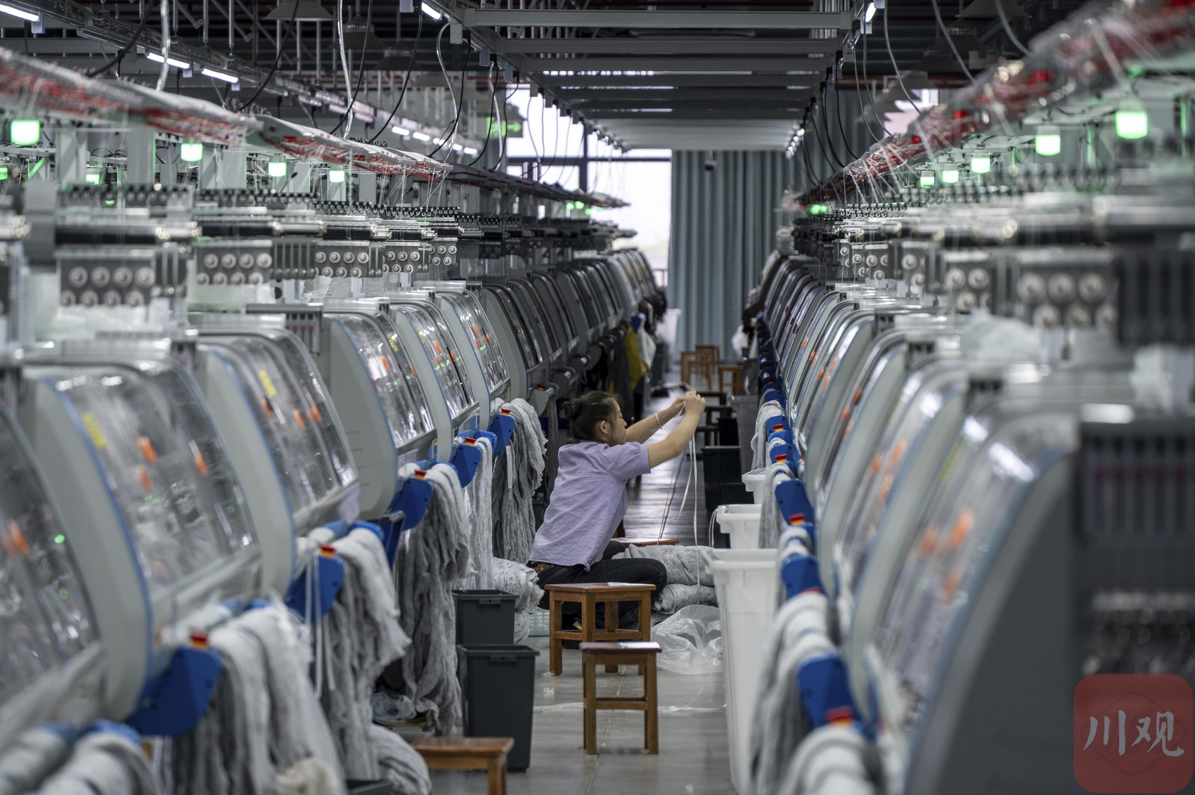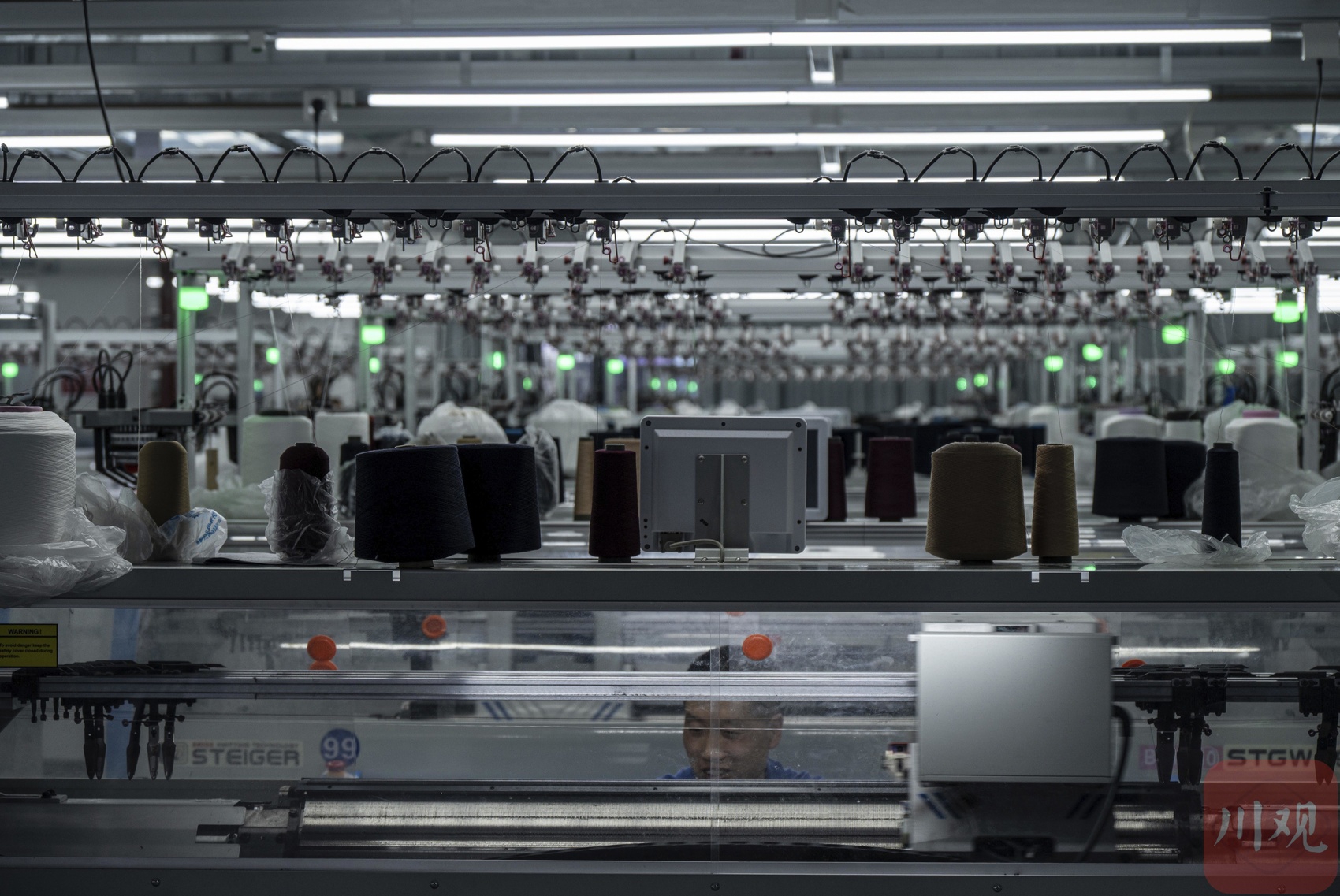 在同一片园区内,四川俊乔针织服装有限公司的生产车间同样呈现繁忙景象:电脑横机、缝盘机高速运转,打包好的针织布片通过智能吊挂系统有序传送,构建起高效流畅的生产链条。据企业负责人曾兰介绍,随着生产系统“智改数转”的持续推进,俊乔针织已形成一套完善的现代化针织服装智能制造流程。通过自主创新工艺、优化管理体系等举措,企业实现了产品生产成本下降与生产效率提升的双重突破,在市场竞争中更具优势。