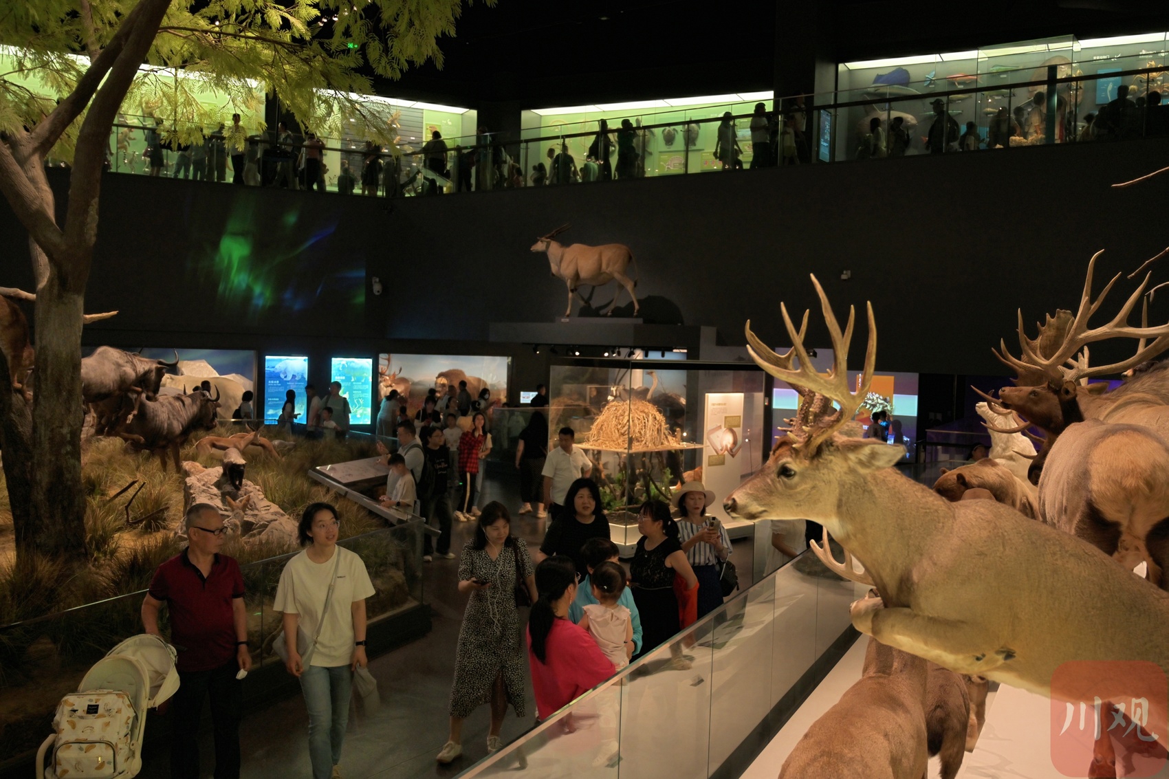 今天是第49个国际博物馆日,上午9点,成都自然博物馆外已经排起了长队。