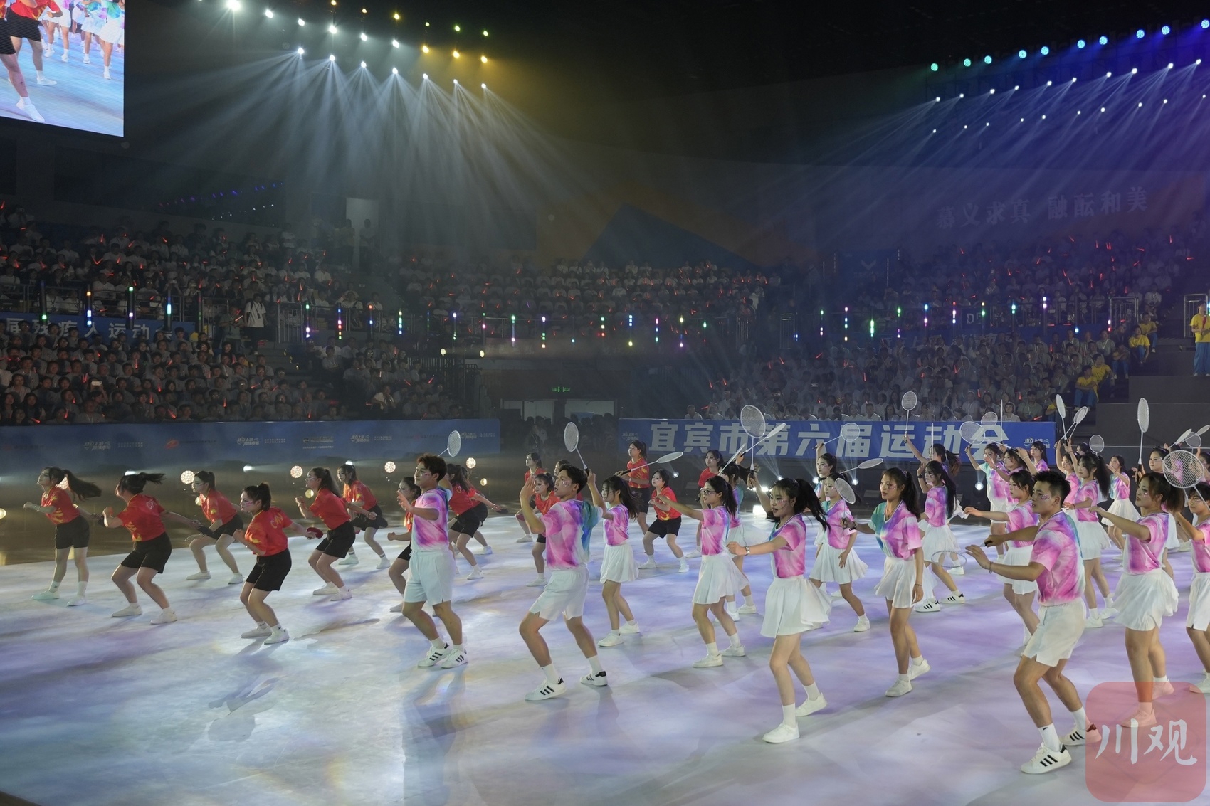 随着音乐响起,开幕式现场地面陆续投影出游泳、象棋、田径等项目的3D投影。“这是川南首次实现地面3D投影与纱幕透视的全程联动,以‘科技+美学’的语言,将长江生态保护的时代主题融入体育盛会。”据开幕式总导演卢欣然介绍,本土化特色也是本次开幕式的一大亮点,开幕式表演近700位演员都来自宜宾本地,节目还穿插融入宜宾武术、速滑等优势项目代表。