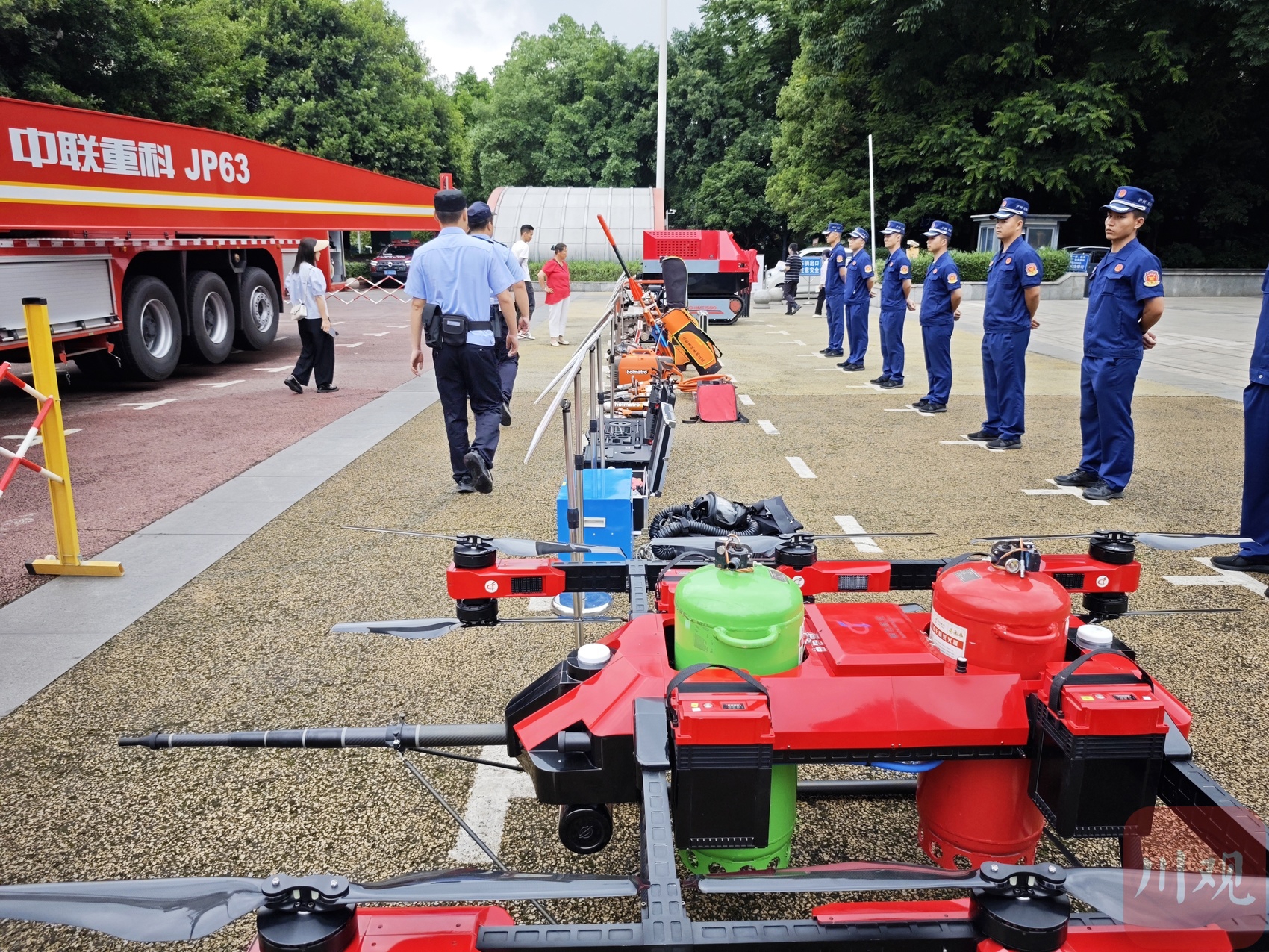 “这个是中型复合翼无人机,主要巡查监视、通讯保障、人员搜救等场景。”在救援装备展示区,泸州市消防救援支队展示多种多样的消防救援先进装备和消防犬,市民还可以进行装备穿戴,灭火、火场逃生等体验。