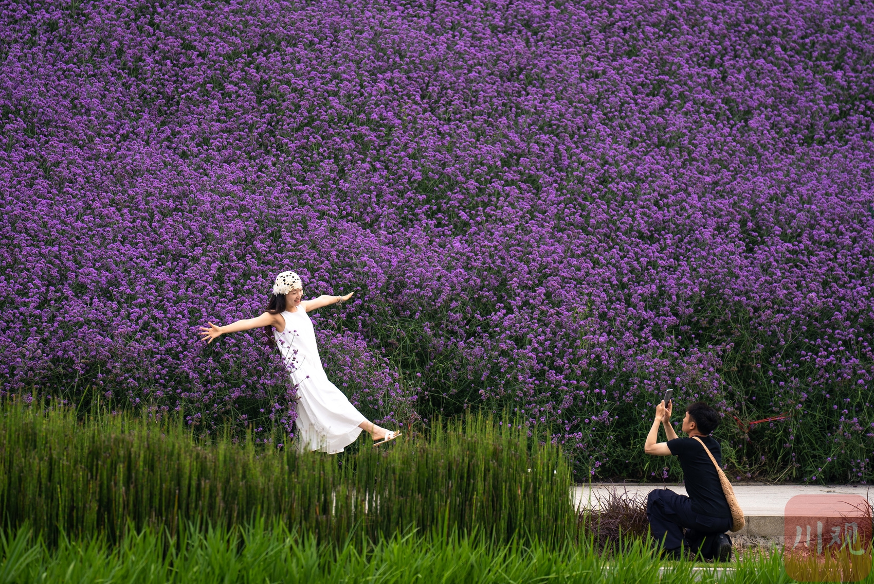 5月29日下午,一场小雨为成都市温江区星河World·科创城公园带来了别样清新,园内马鞭草迎来盛花期。成片的紫色花朵肆意绽放,微风轻拂,似紫色海浪翻涌,如梦似幻。