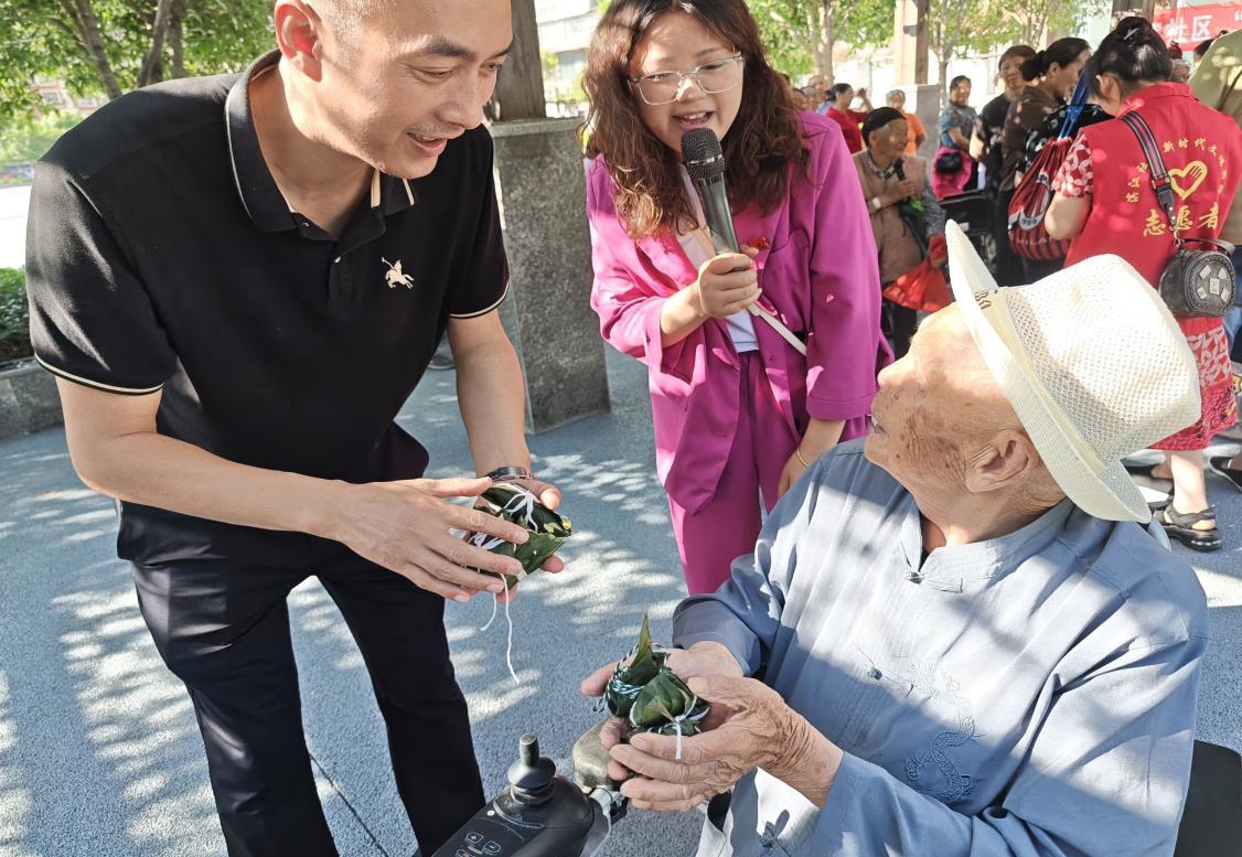 “粽绳三圈半,角尖要压实。”在滨江社区活动现场,60余位居民围桌竞速包粽,65岁的李淑芳展示的三角粽捆扎技法吸引众人围观、学习,志愿者用视频全程记录,之后还将这种传统手艺转化为视频教程在其他社区推广。据了解,现场制作的500多个粽子也将被装入手绘“安康礼盒”,由志愿者送到社区独居老人、困难家庭及户外工作者手中。