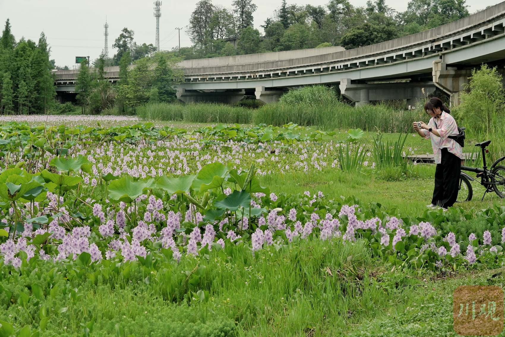 6月2日,端午节小长假最后一天,成都锦江区白鹭湾湿地公园内,水葫芦花肆意盛放,宛如一片梦幻的紫色海洋。