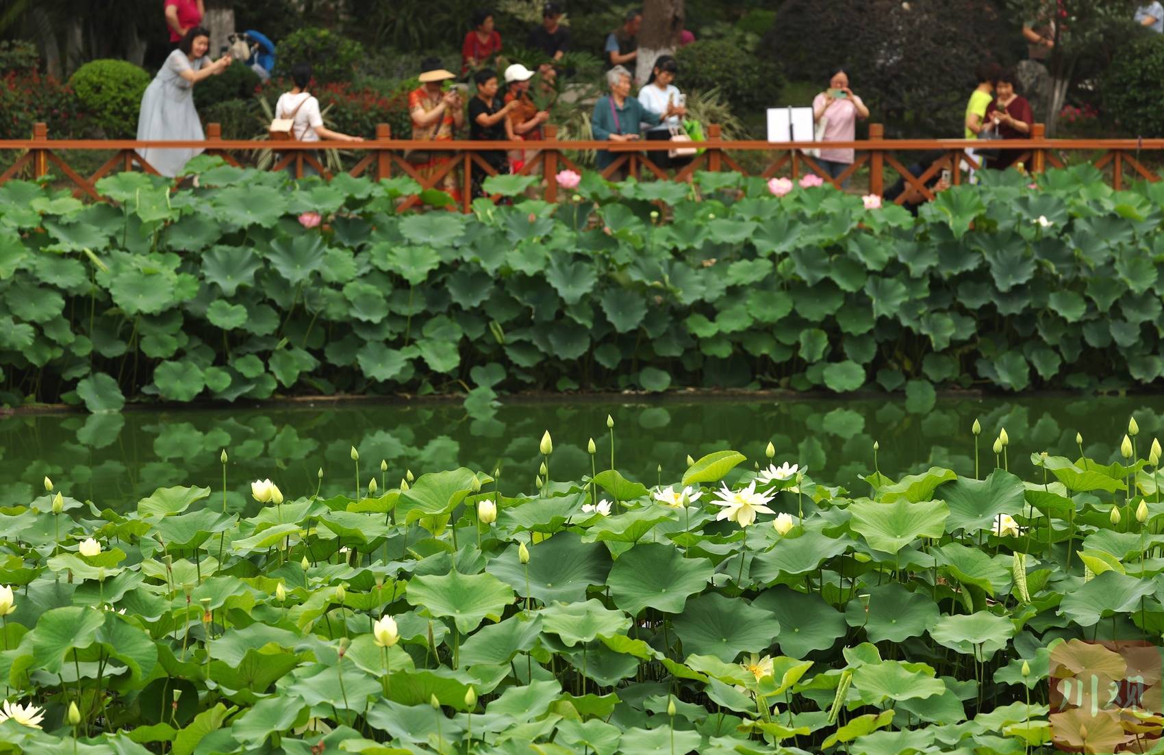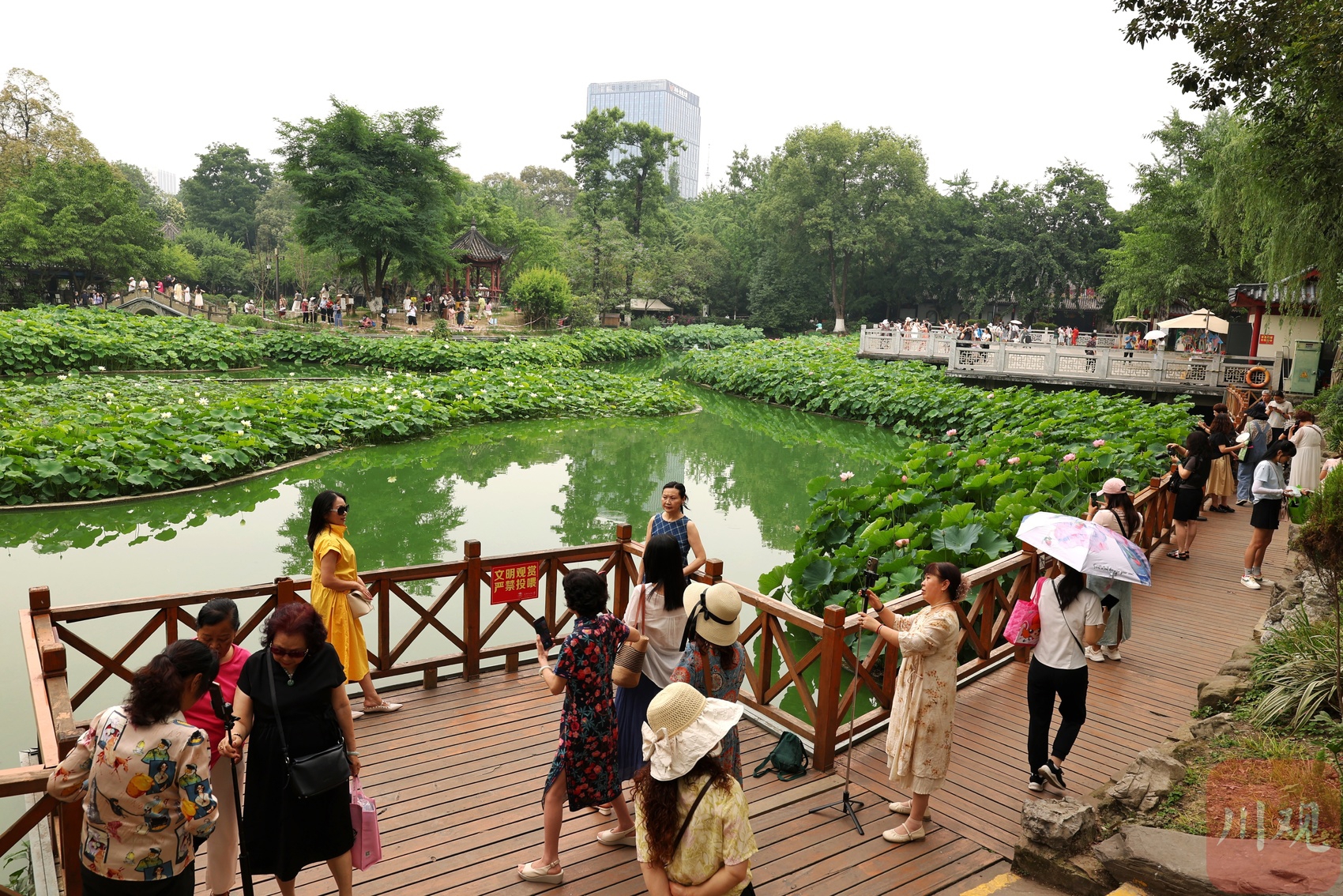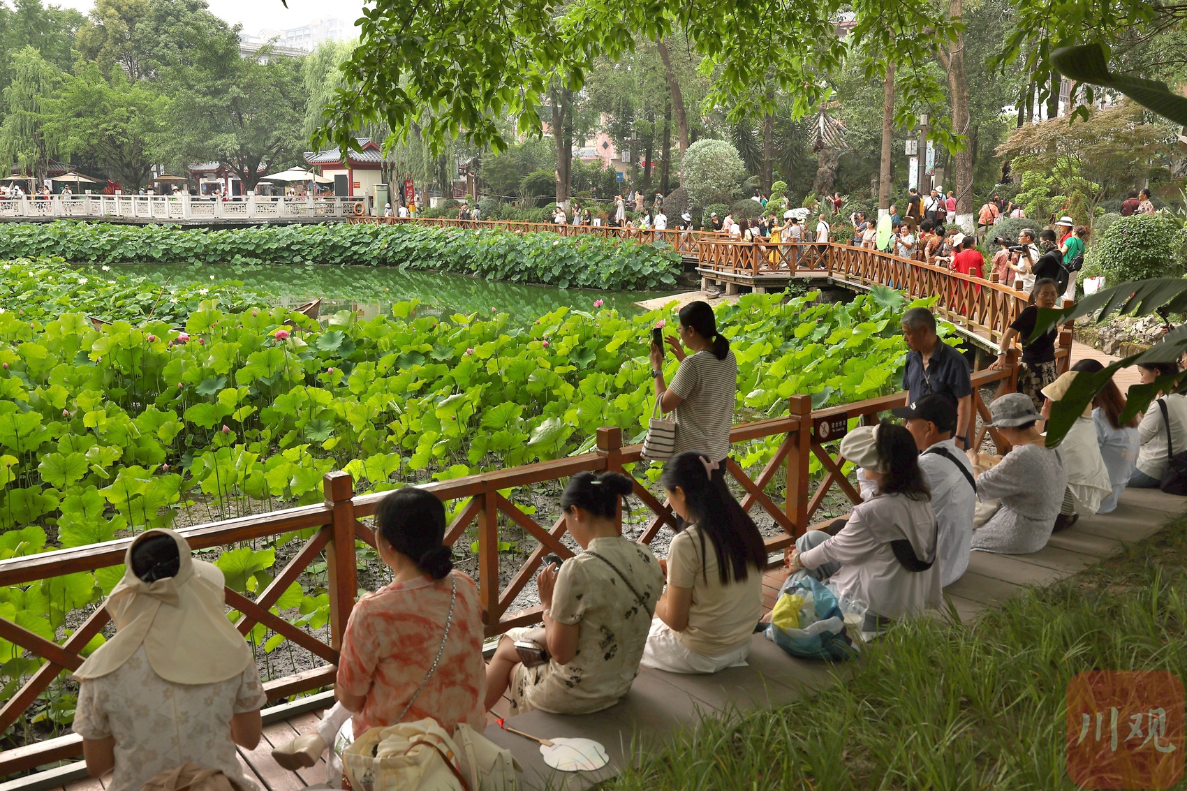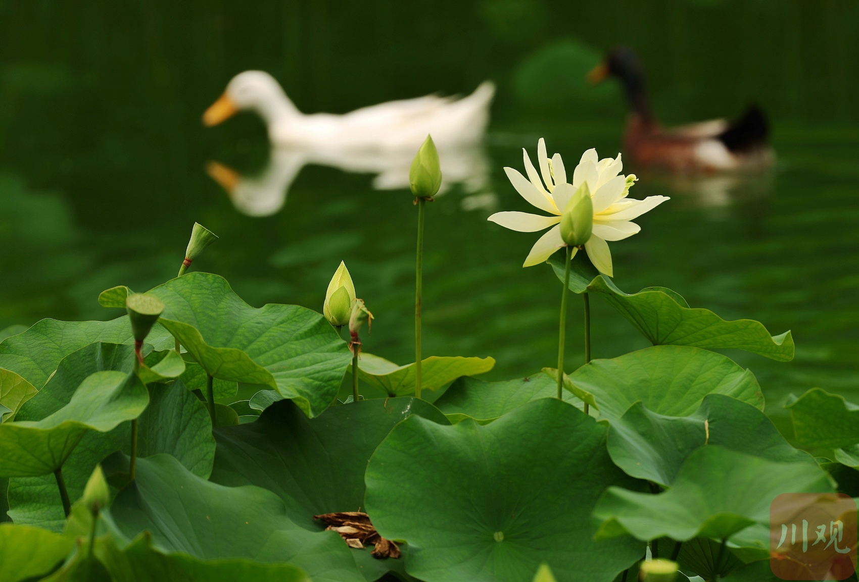 6月5日日芒种时节,蓉城夏意渐浓。成都市文化公园内的荷塘新荷初绽,一早池畔就围满了赏花、拍照的人群。据工作人员介绍,自 2018 年起,公园优选 9 个品种的荷花栽种于池塘,其中两款还是引进的太空荷花 ——“太空红旗” 和 “太空飞天”。池中莲影摇曳,不时有鸭子悠然游弋、白鹭觅食。翠鸟与蜻蜓也不时在荷叶间驻足,这些灵动身影为荷塘画卷添上点睛之笔。