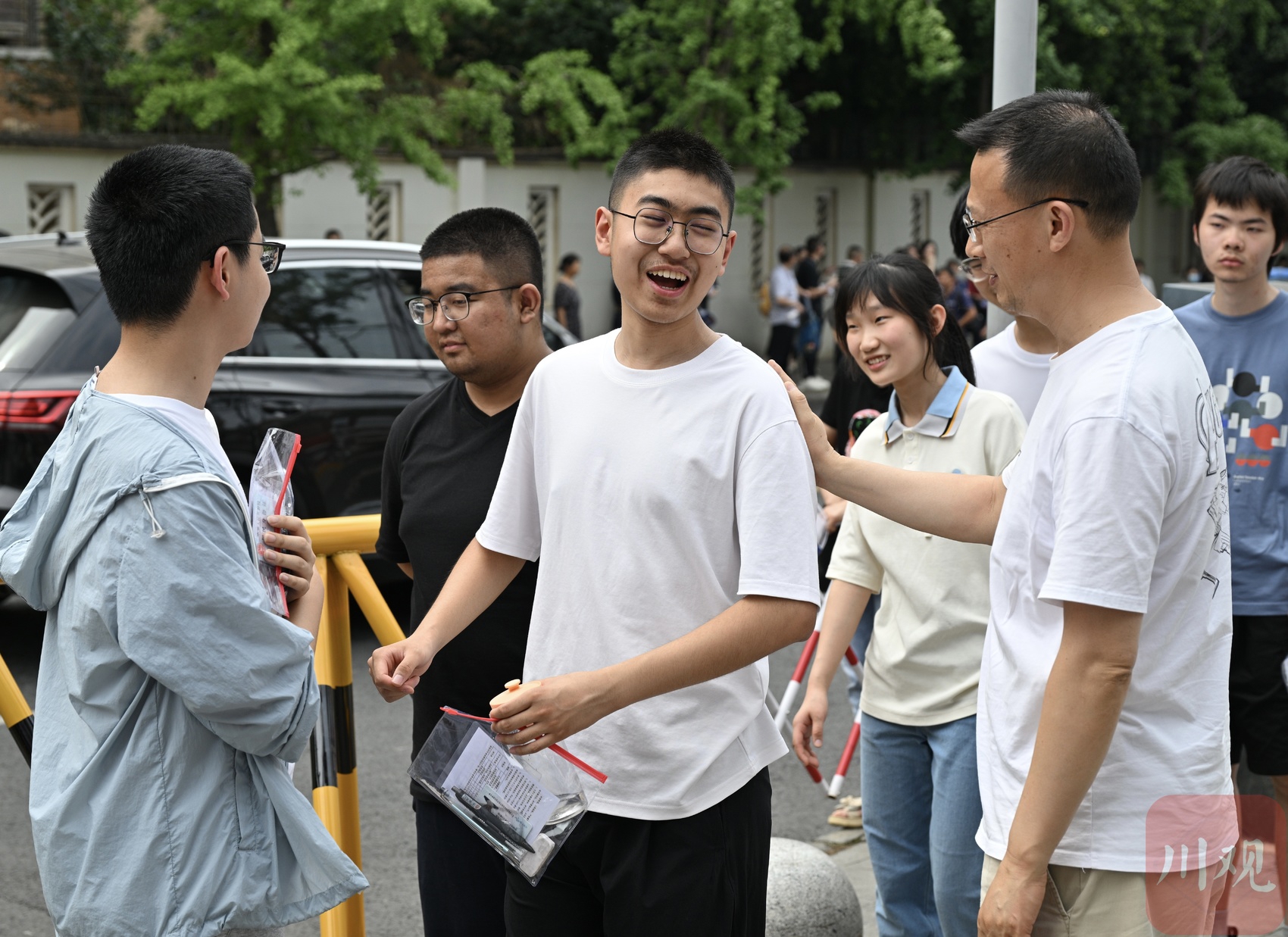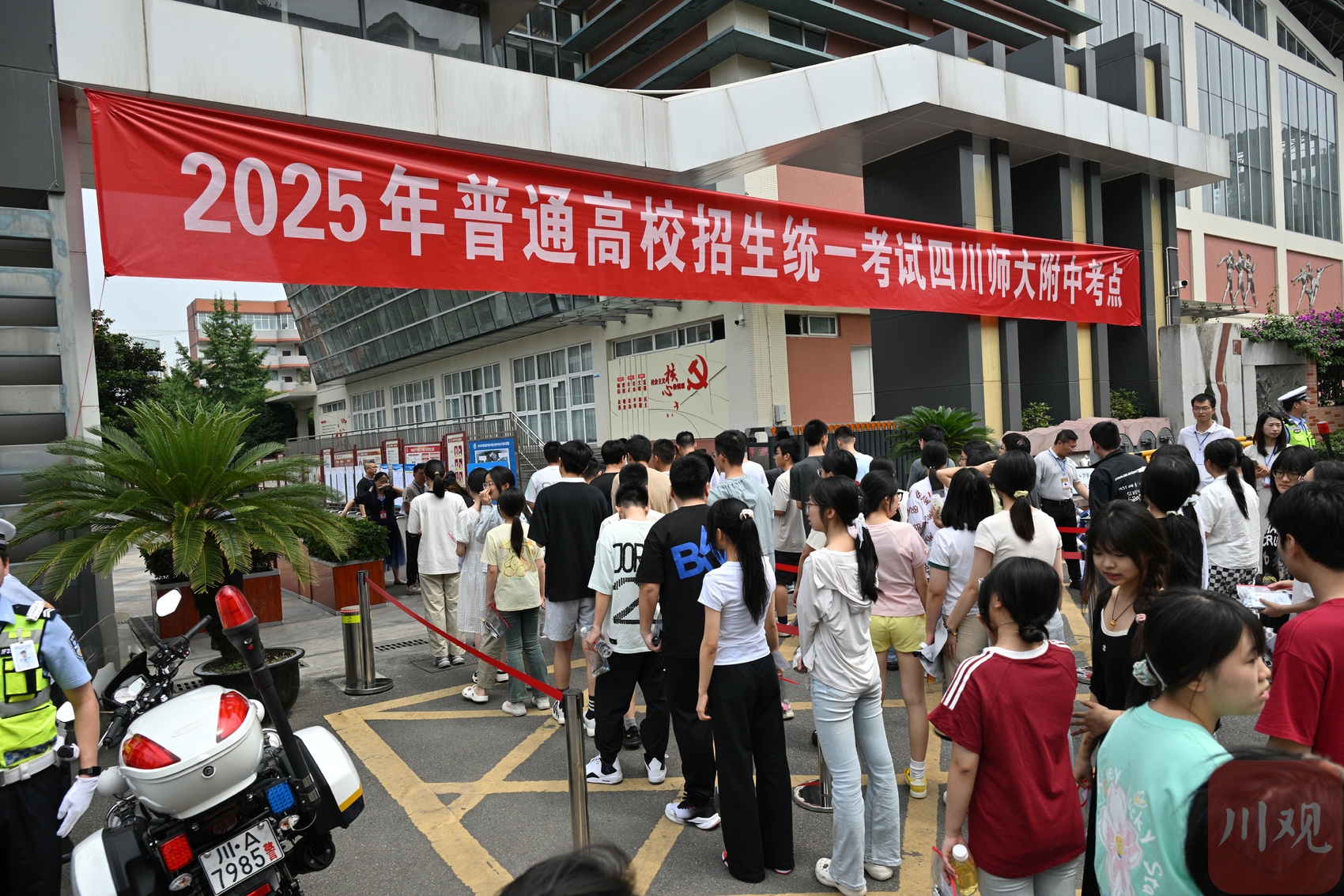 四川师大附中考点外,考生们有序进场。