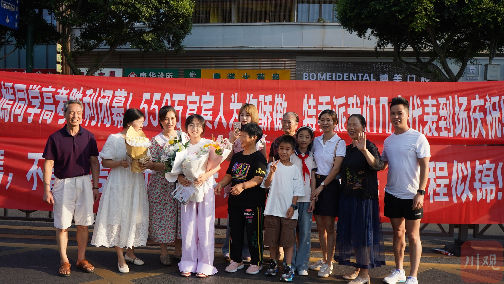 6月9日下午6时15分,随着最后一场生物学科目考试结束铃声响起,四川省2025年普通高考顺利结束。在宜宾三中考点外,考生家长与亲朋好友手持鲜花横幅,迎接考生凯旋。