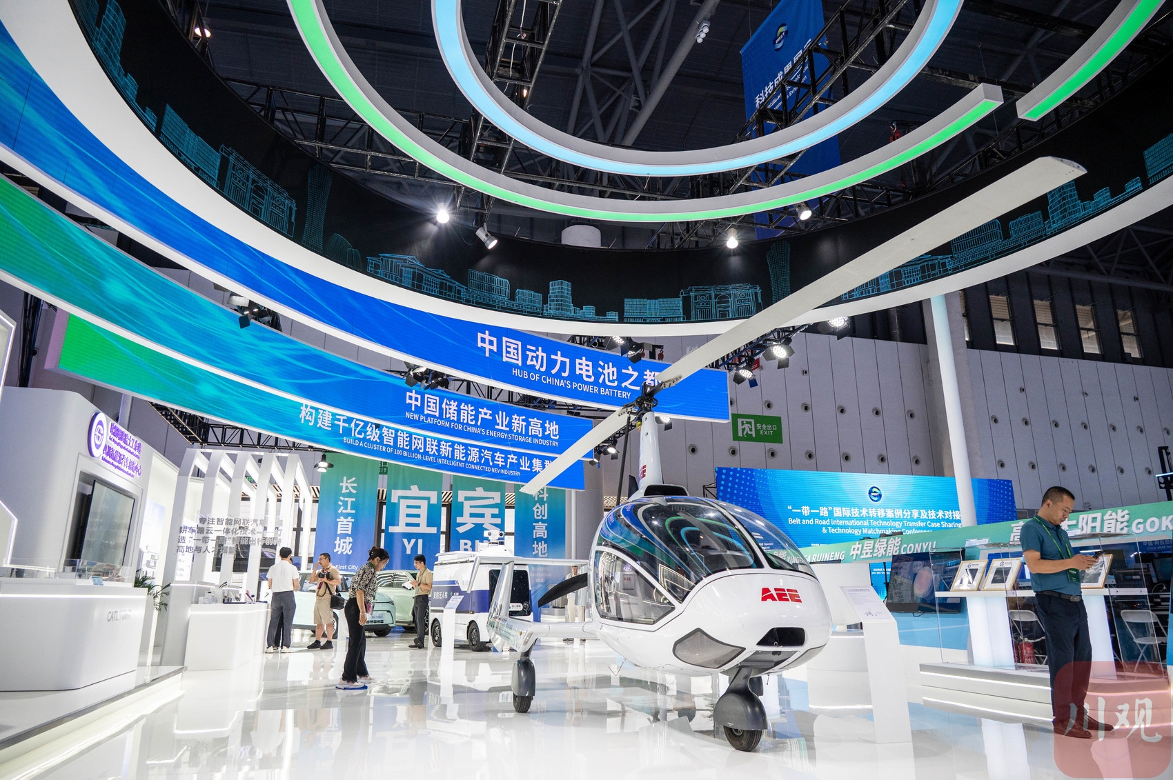 宜宾馆中展示的低空经济和新能源电池。