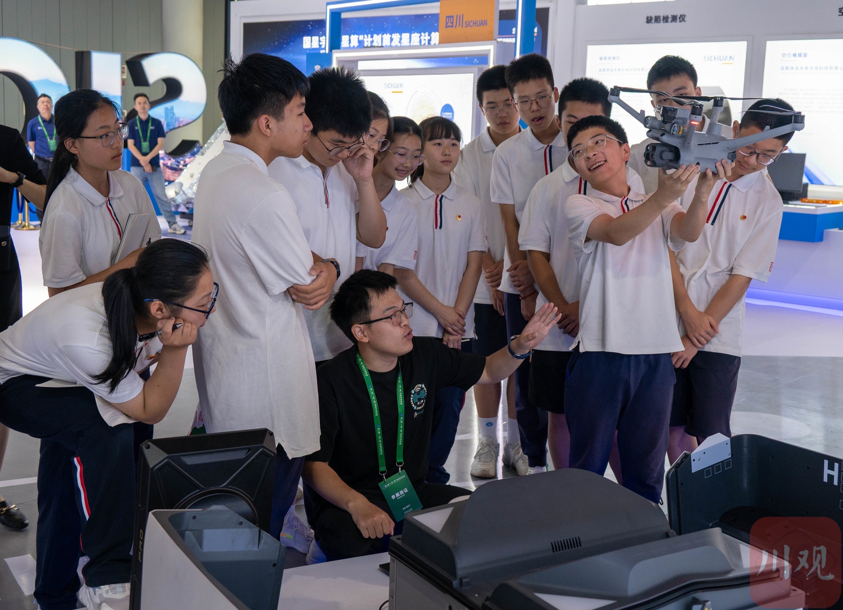 学生参观智能驾驶飞行器。