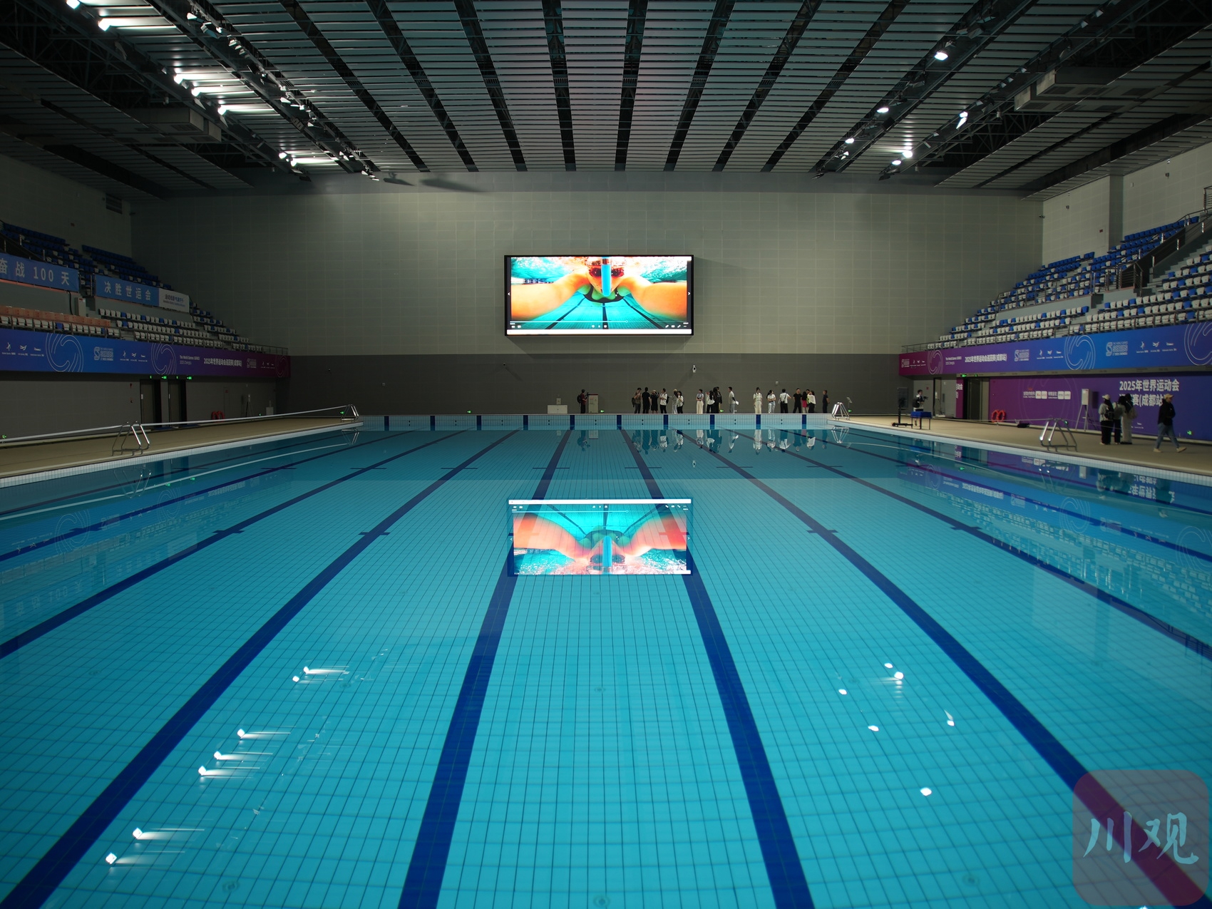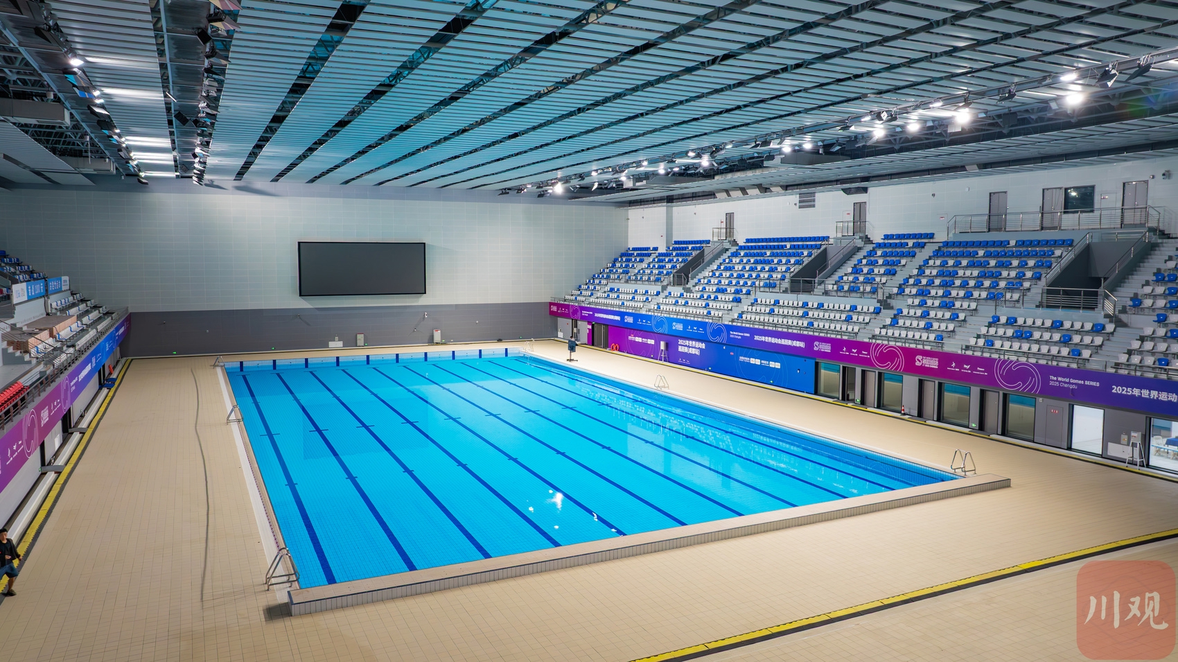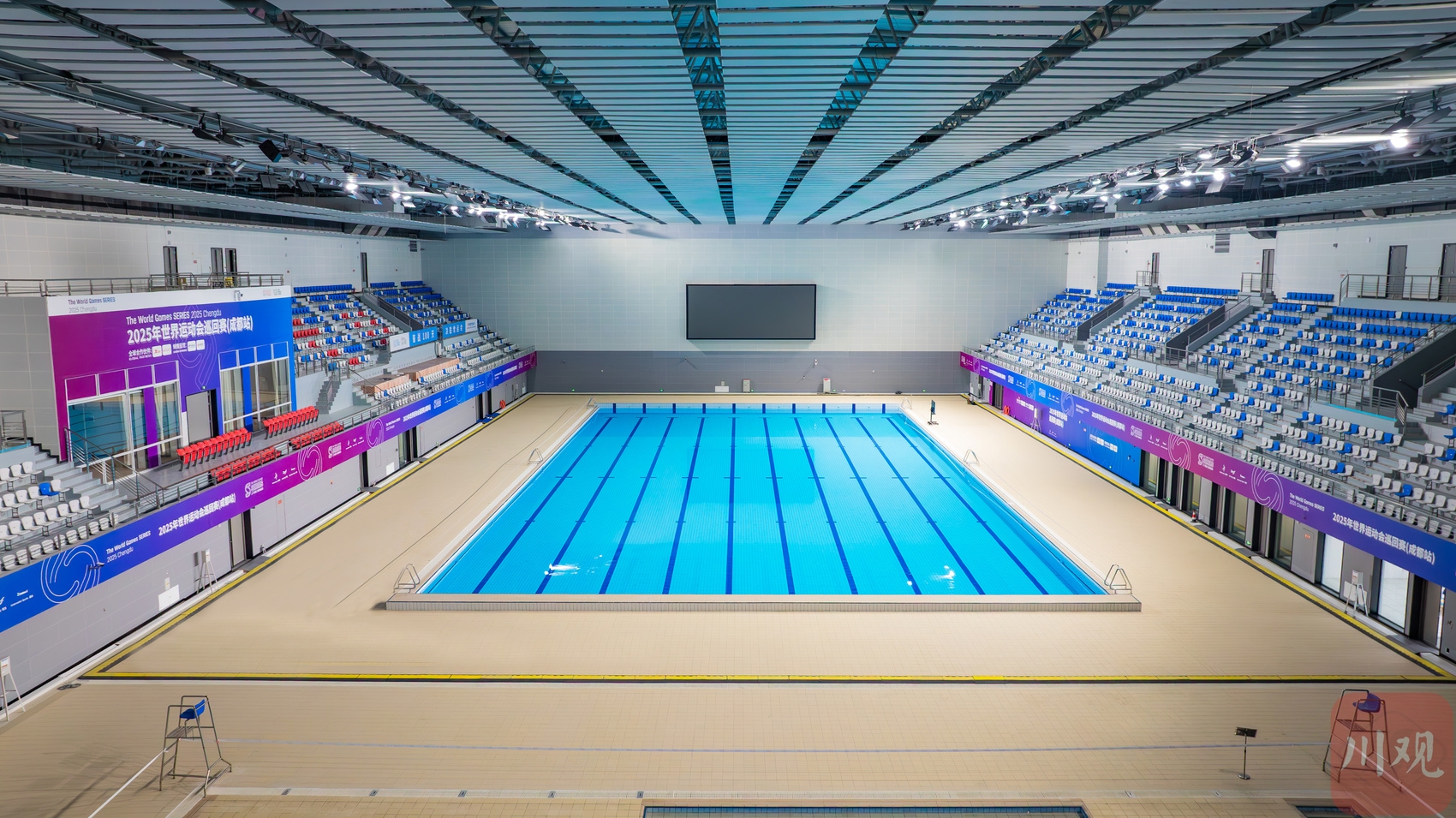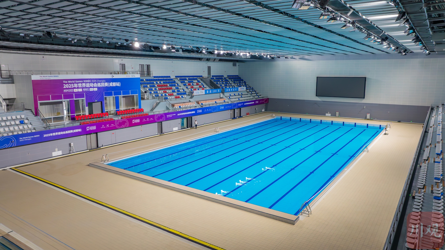 走进成都体育学院场馆中心游泳馆,记者看到整个区域宽敞明亮,其基本改造已经完成。包括50米标准游泳池2个,临建转播工作间等功能用房182平方米,赛事期间将开放座席数1398个。据介绍,成都世运会期间,救生、潜水两个大项的比赛将在成都体育学院三岔湖校区的游泳馆内进行。