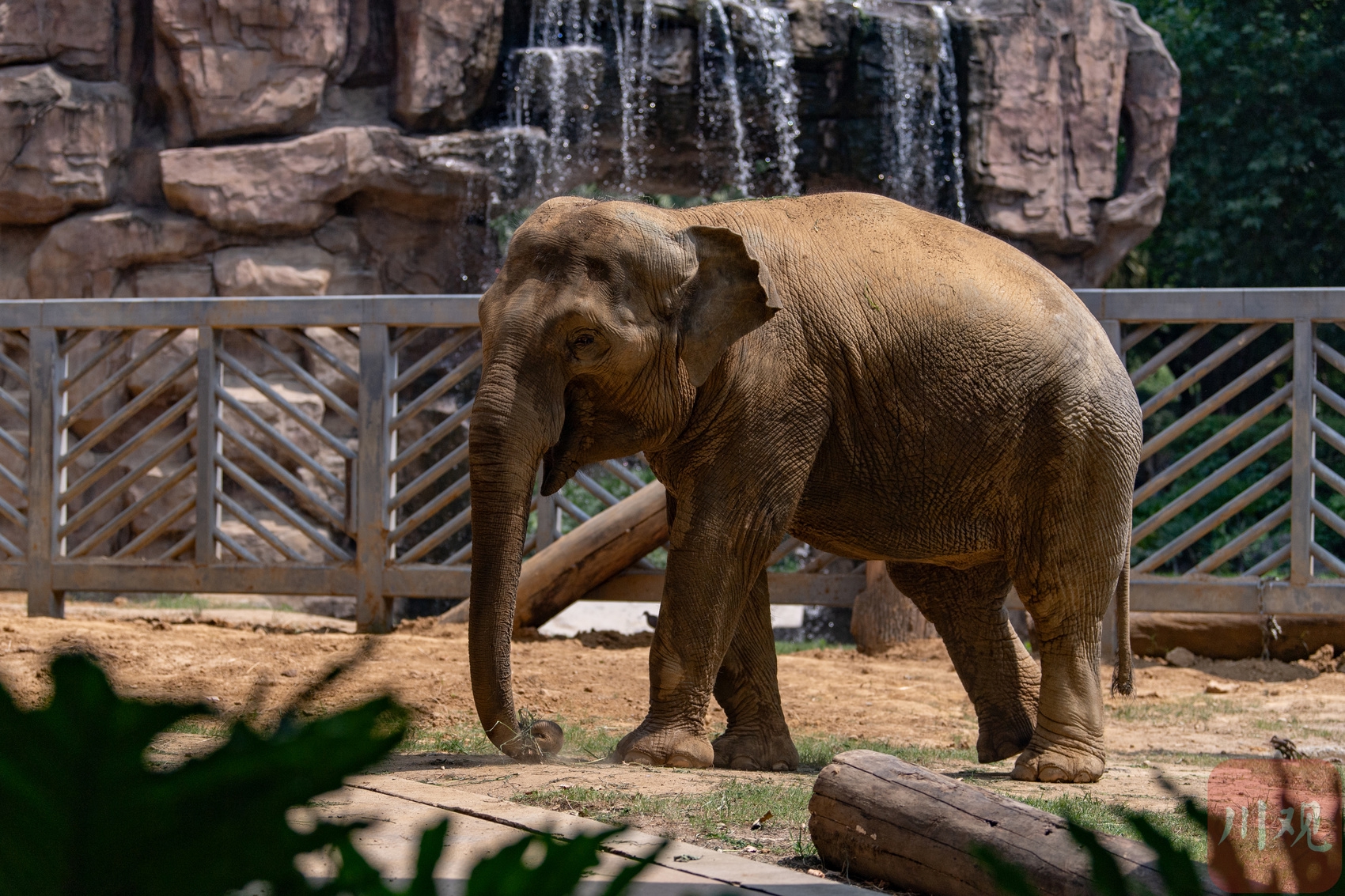 在亚洲象户外活动区域,成都动物园设置了喷泉为大象降温。