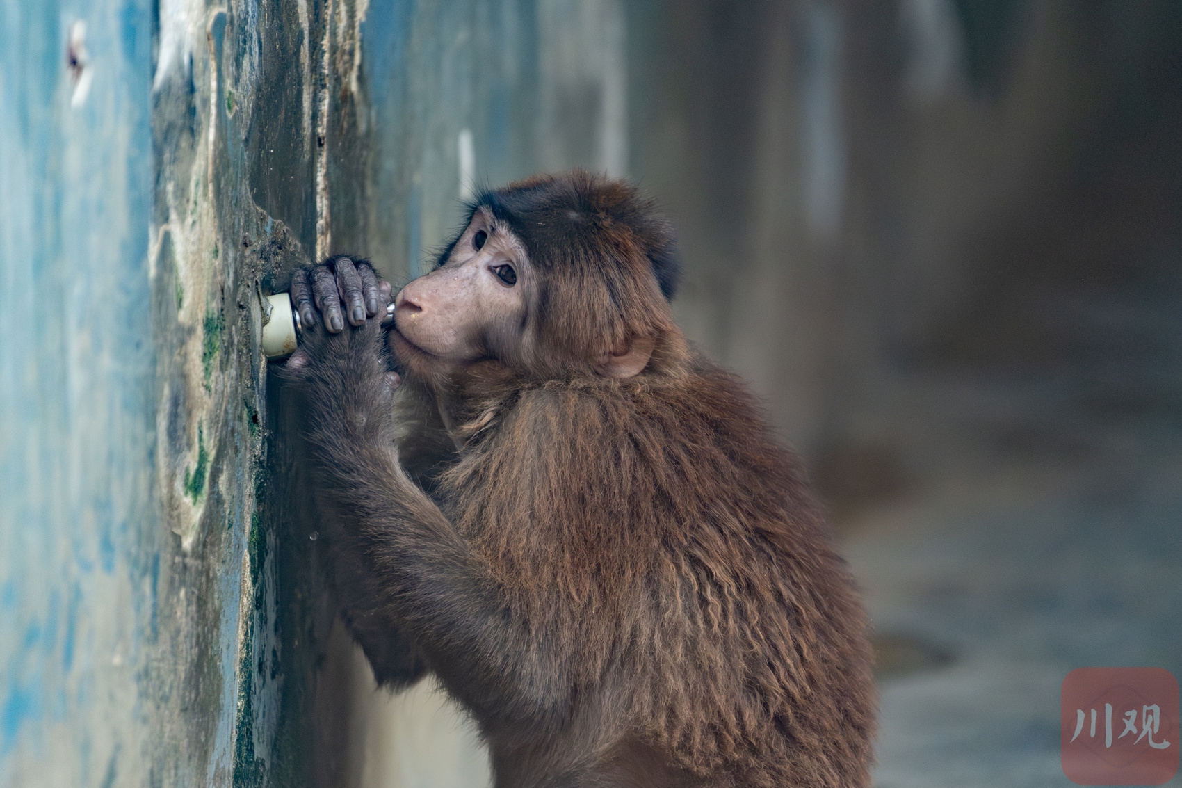 6月16日,藏酋猴在成都动物园自助饮水。