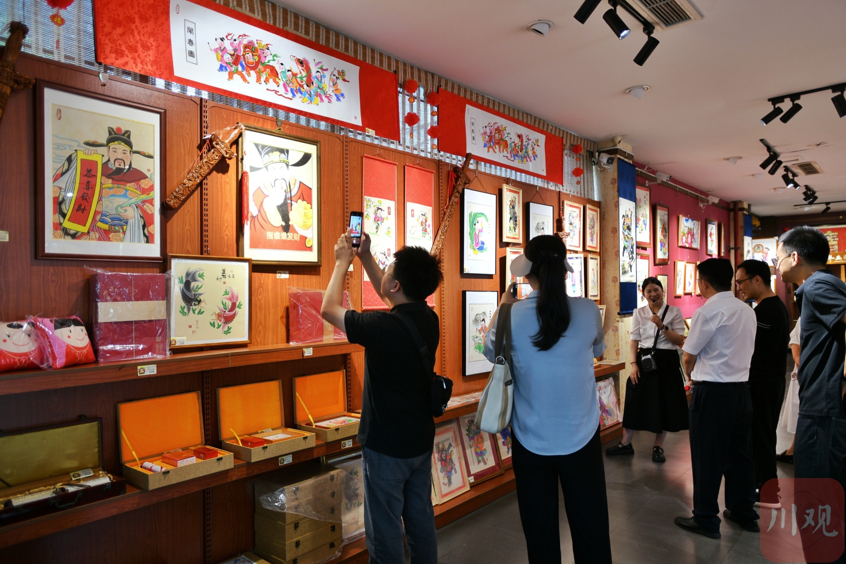 在绵竹年画展示馆参观年画产品。