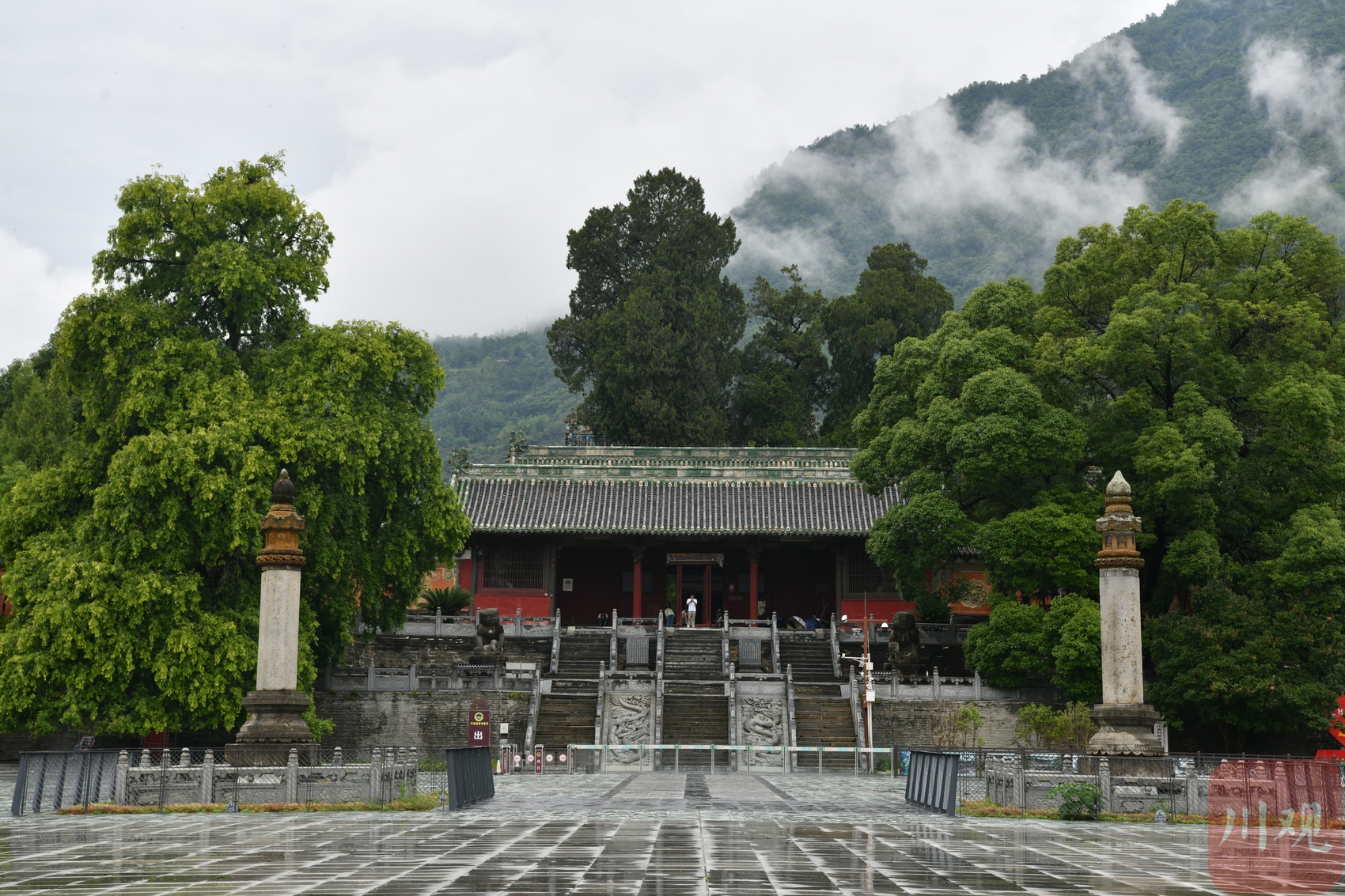 6月24日,下着细雨,来平武报恩寺游览的游客。
