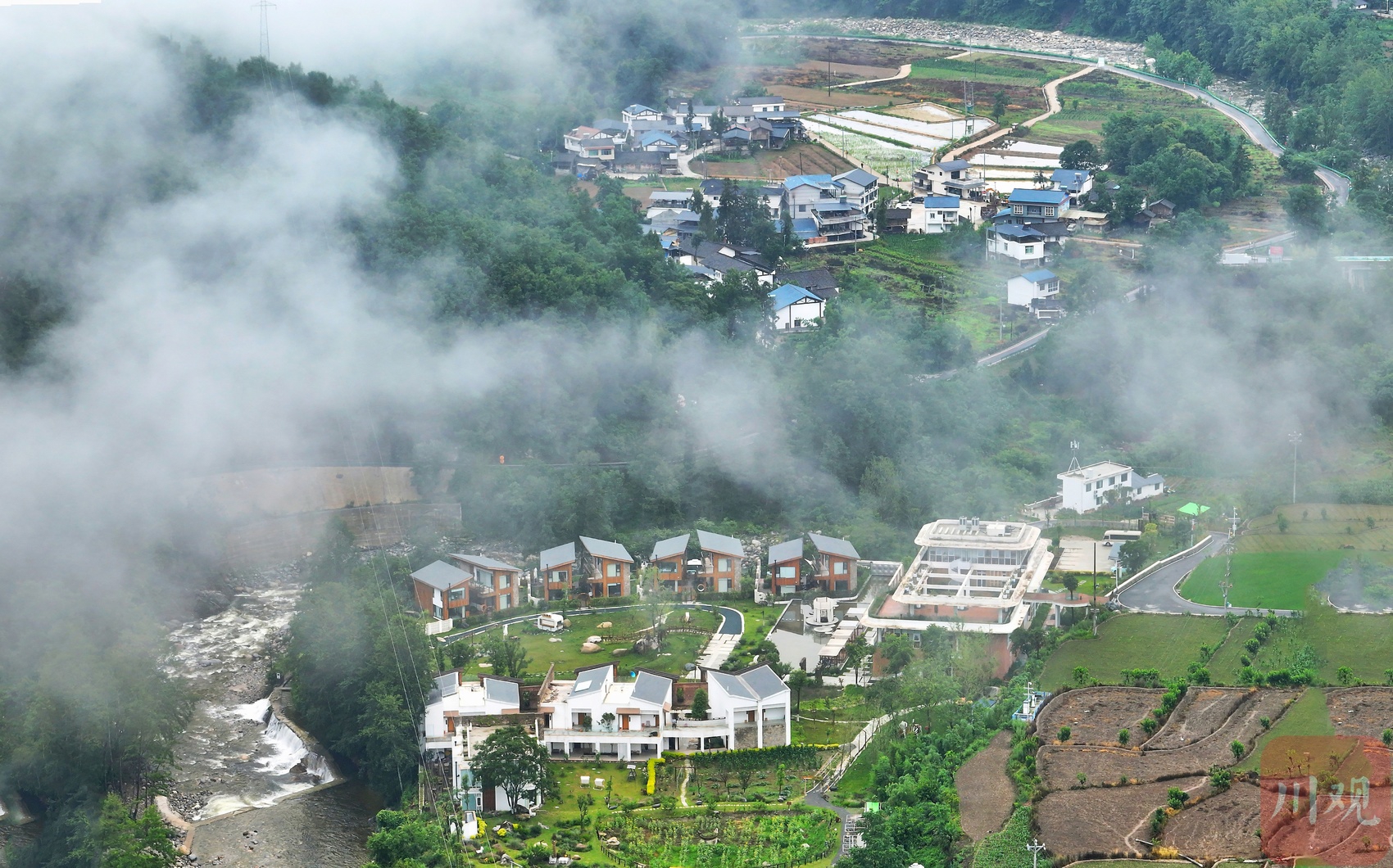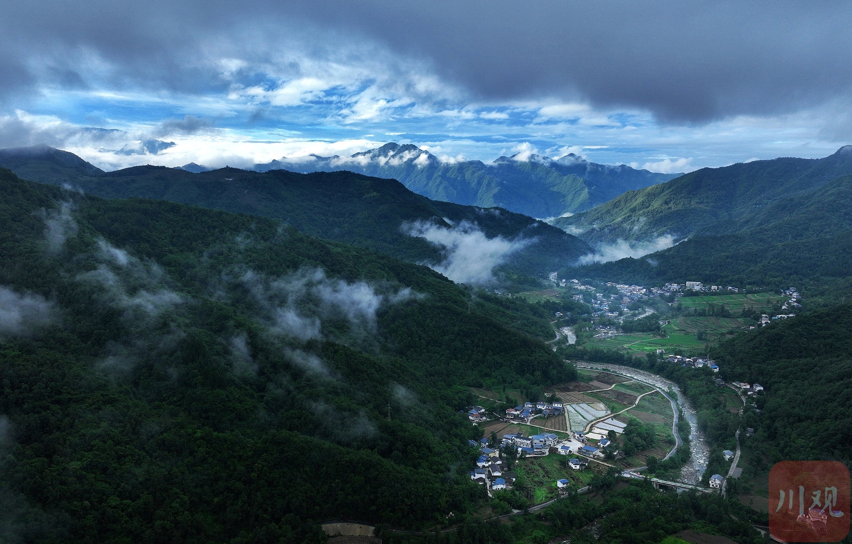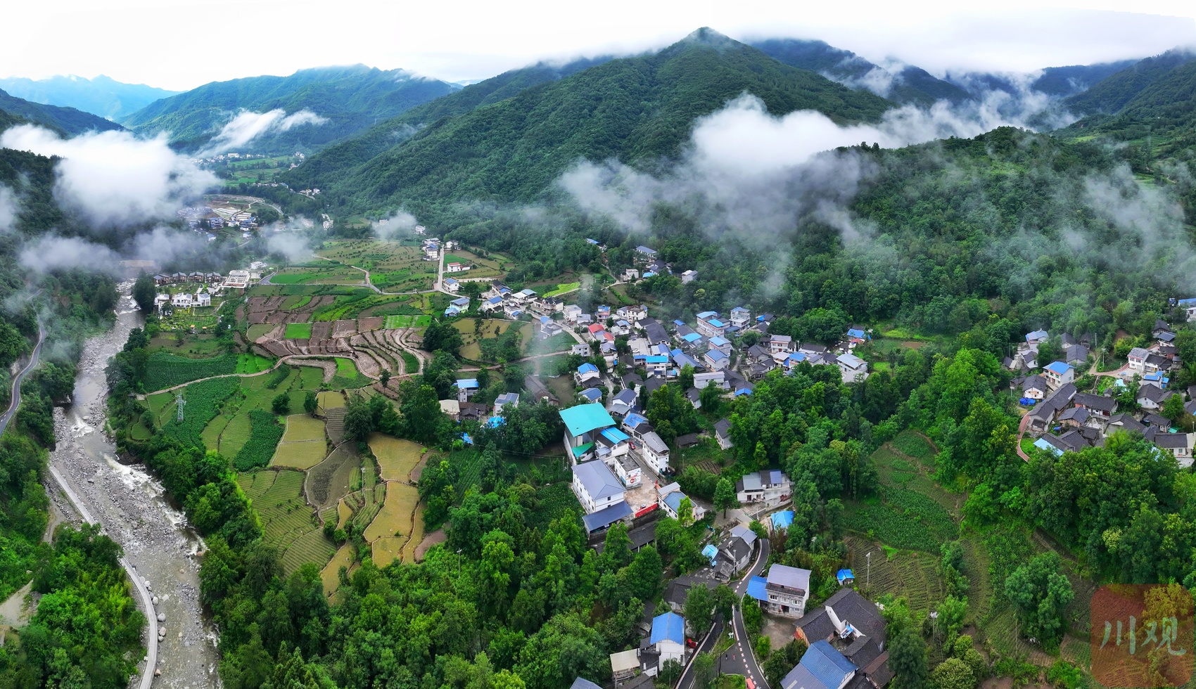 6月25日晨,夜雨初歇,平武县高村乡老河沟河畔,土墙青瓦的农舍静立,薄雾如轻纱般萦绕林间,勾勒出一幅令人沉醉的乡愁画卷。