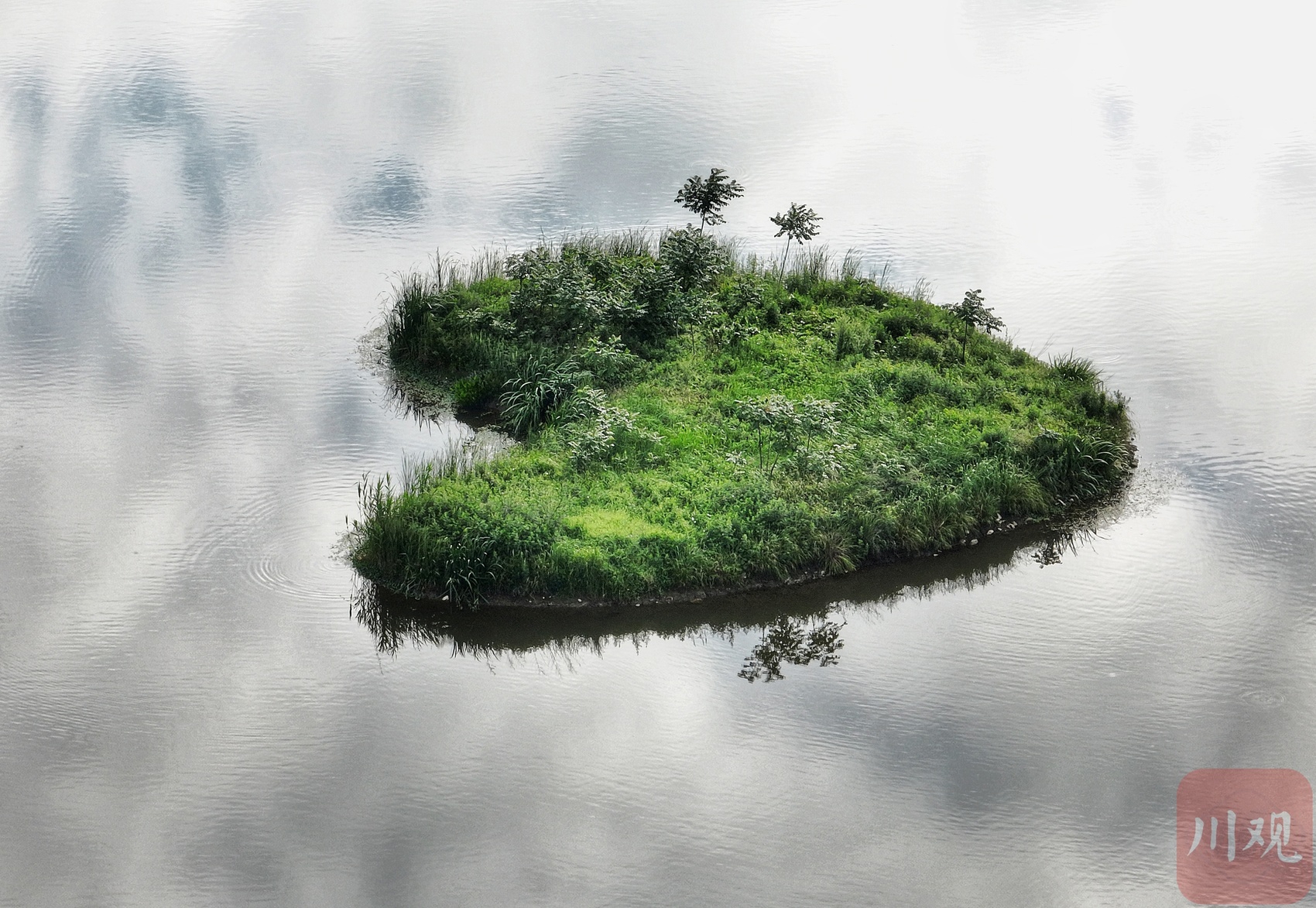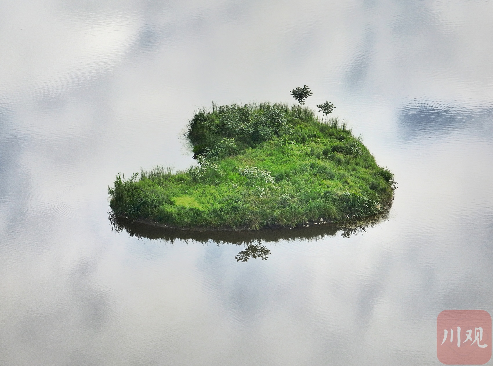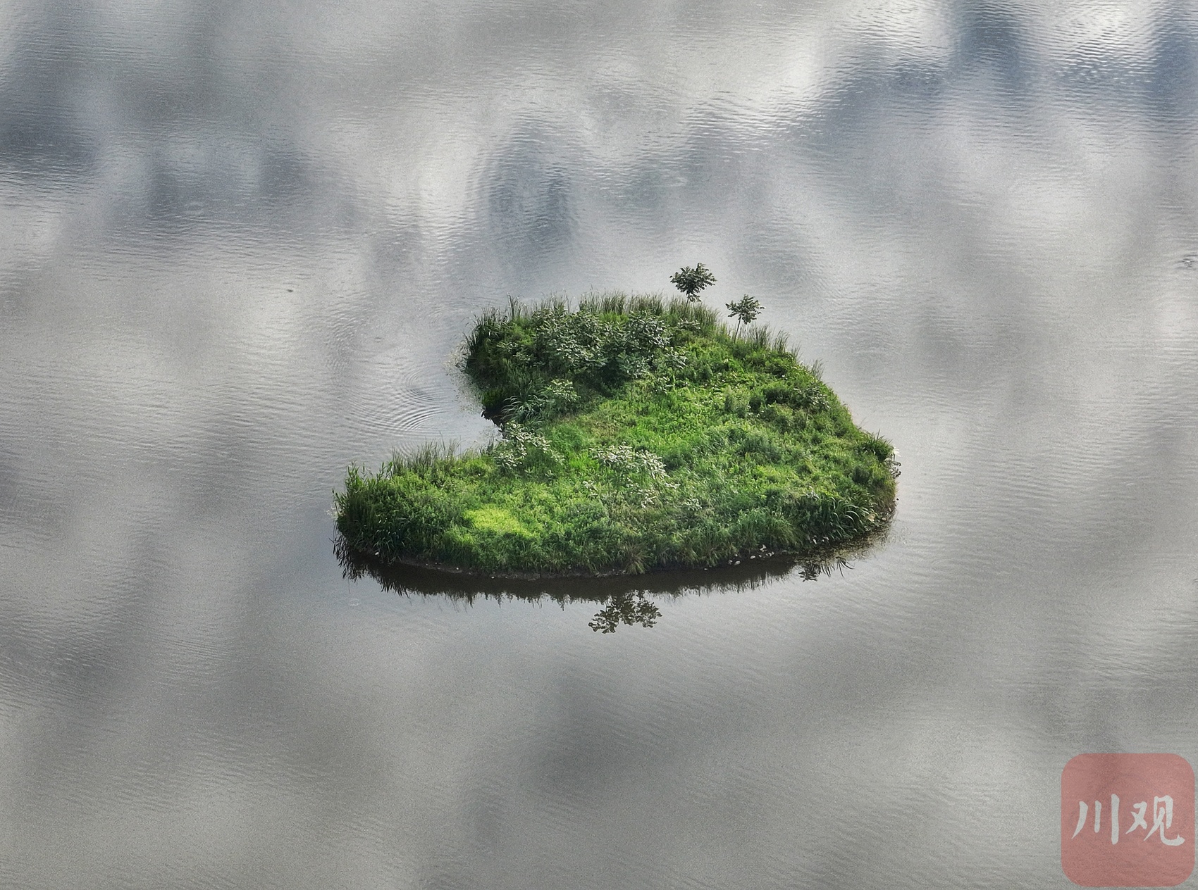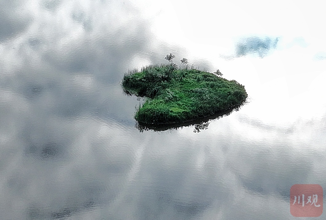 “心形”绿岛湖中双影。