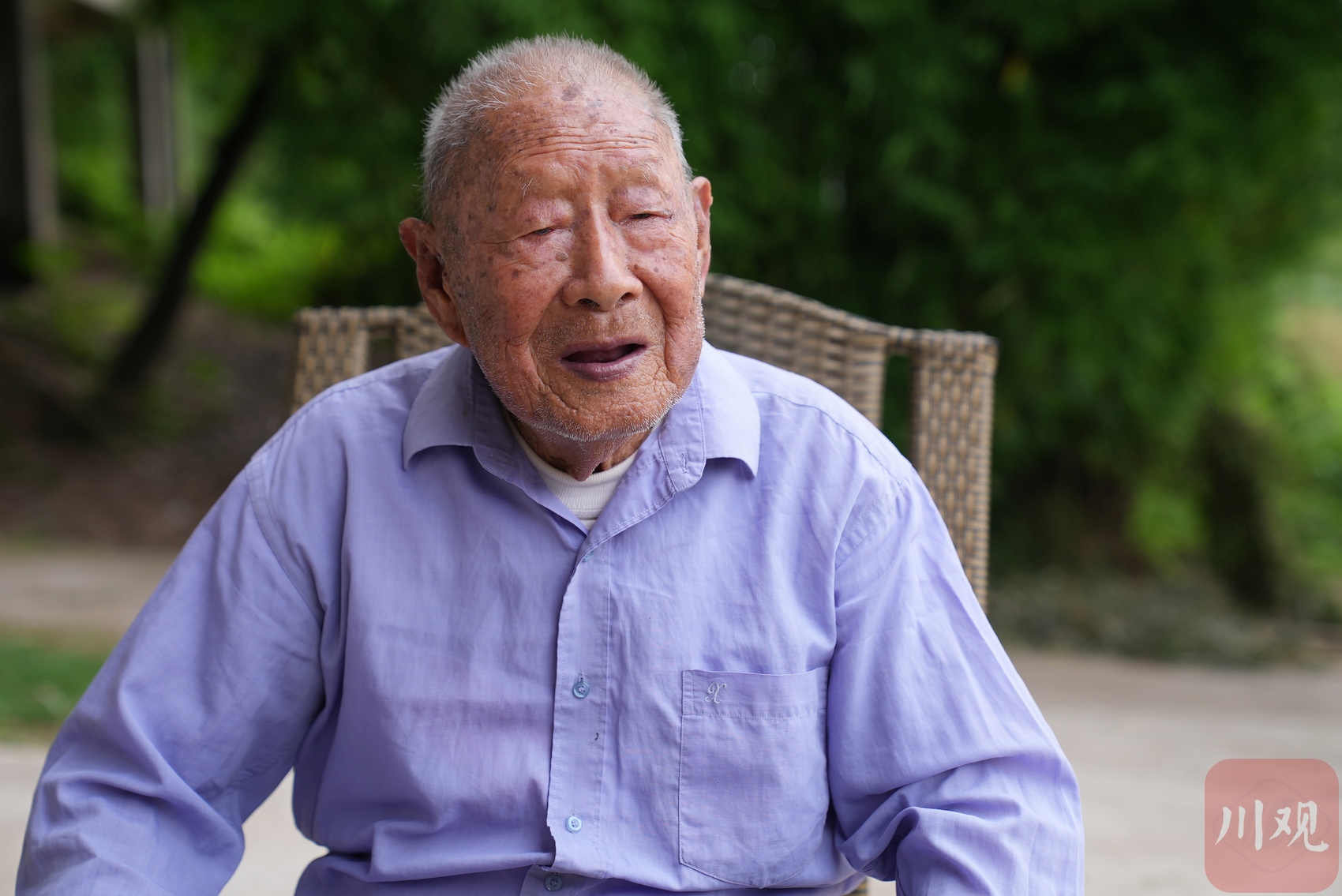 7月9日,在资阳市乐至县金顺镇金家沟村,四川在线记者一行来到104岁高龄的川籍抗战老兵杨贵元家采访,腰杆硬挺、步履稳健的杨贵元老人精神矍铄、声音洪亮,有着不似百岁老人的康健。