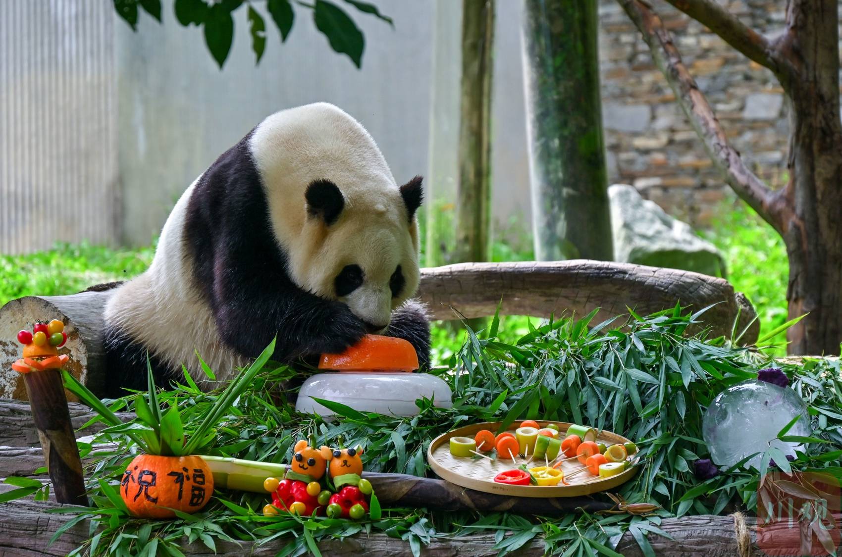 7月17日,中国大熊猫保护研究中心主办的“绿水青山间的新生”2025大熊猫生日季丰容活动在卧龙神树坪基地启动,为近期过生日的大熊猫们集体庆祝,包括了“福宝”等顶流大熊猫。