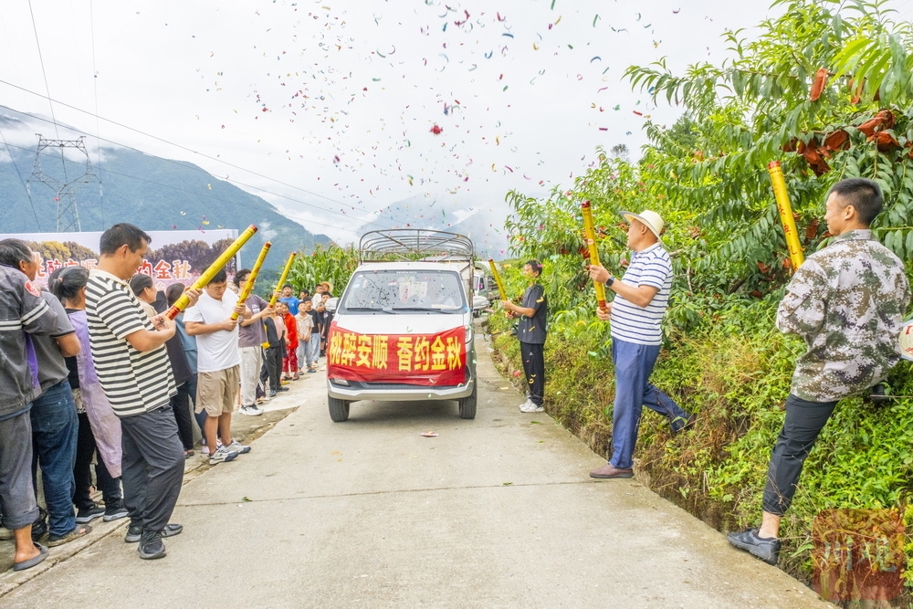 8月11日,雅安市石棉县安顺场镇共和村黄桃种植基地内果香四溢,以“‘桃’醉安顺· ‘香’约金秋”为主题的安顺场镇首届黄桃上市推介活动在此举行。
