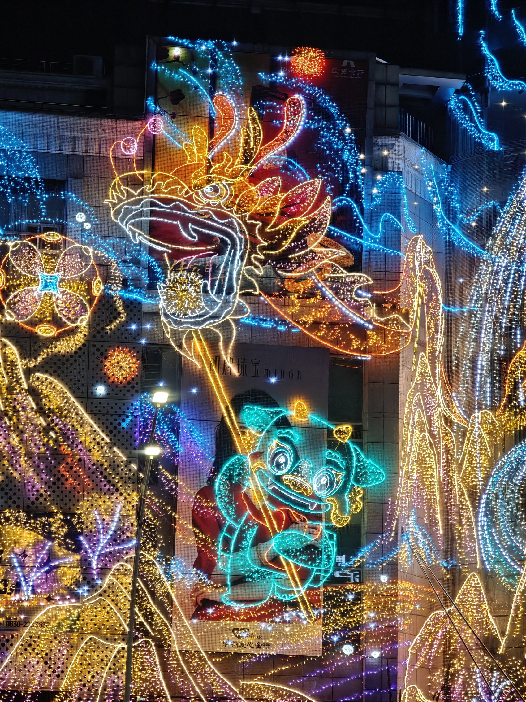 “这幅灯光绘制的《锦绣泸州》山水画展现了泸州地标报恩塔和钟鼓楼、泸州文物酒麒麟、长沱二江、方山雪景,泸县的龙文化等标志,以灯光艺术展现泸州的历史文化与现代风貌。”“钟鼓楼·江阳里”项目负责人李丽涛表示,“钟鼓楼·江阳里”是在完整保留钟鼓楼片区国风建筑外观的同时,对内部功能进行现代化升级,汇聚潮玩、娱乐、特色餐饮。在钟鼓楼原有广场的基础上,又新增一个广场,总面积达1.04万平方米。