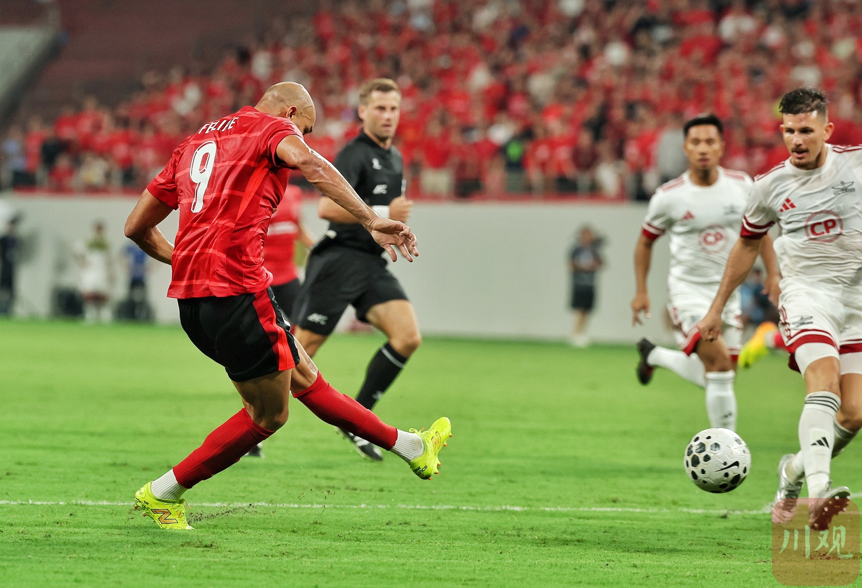 成都蓉城队员费利佩进球瞬间。