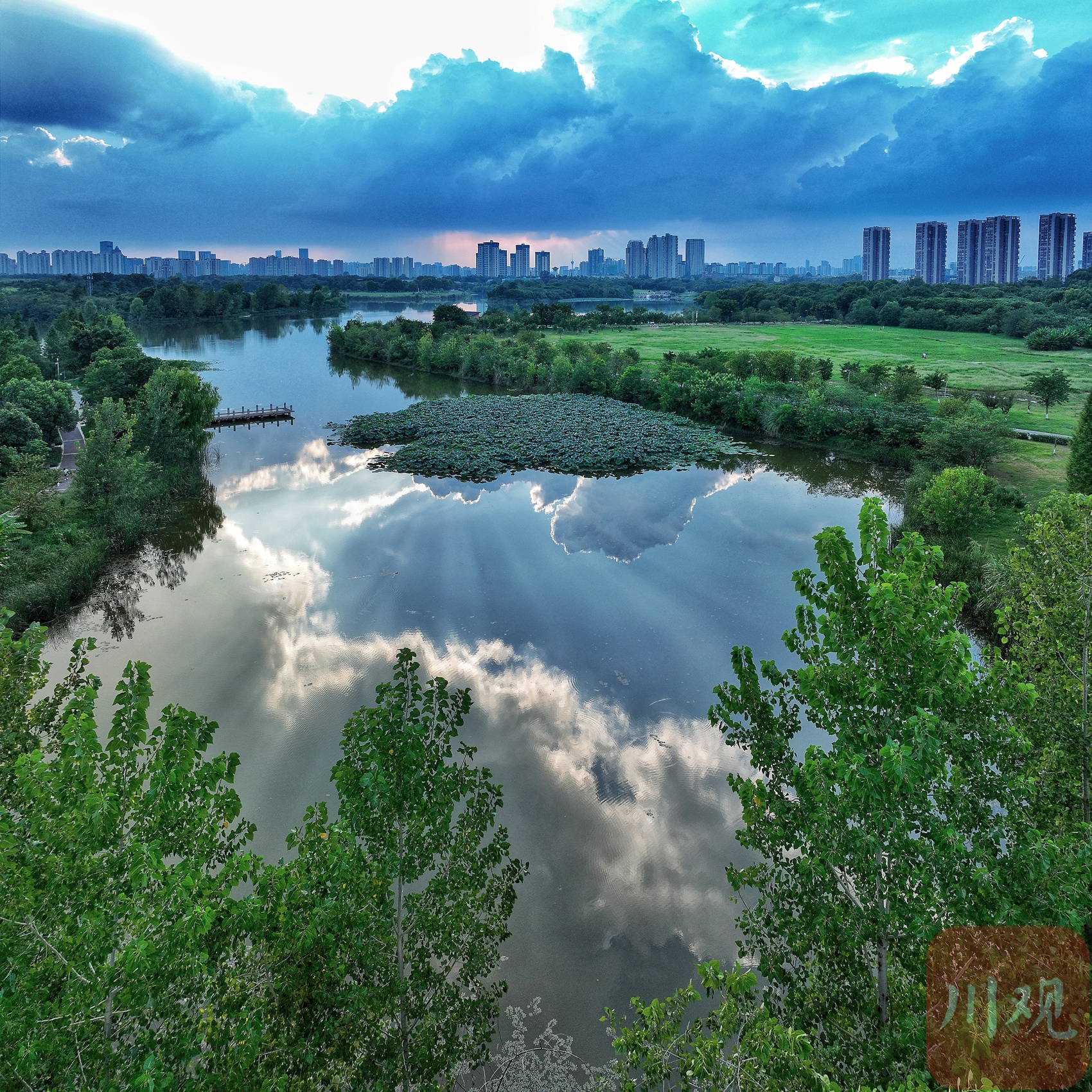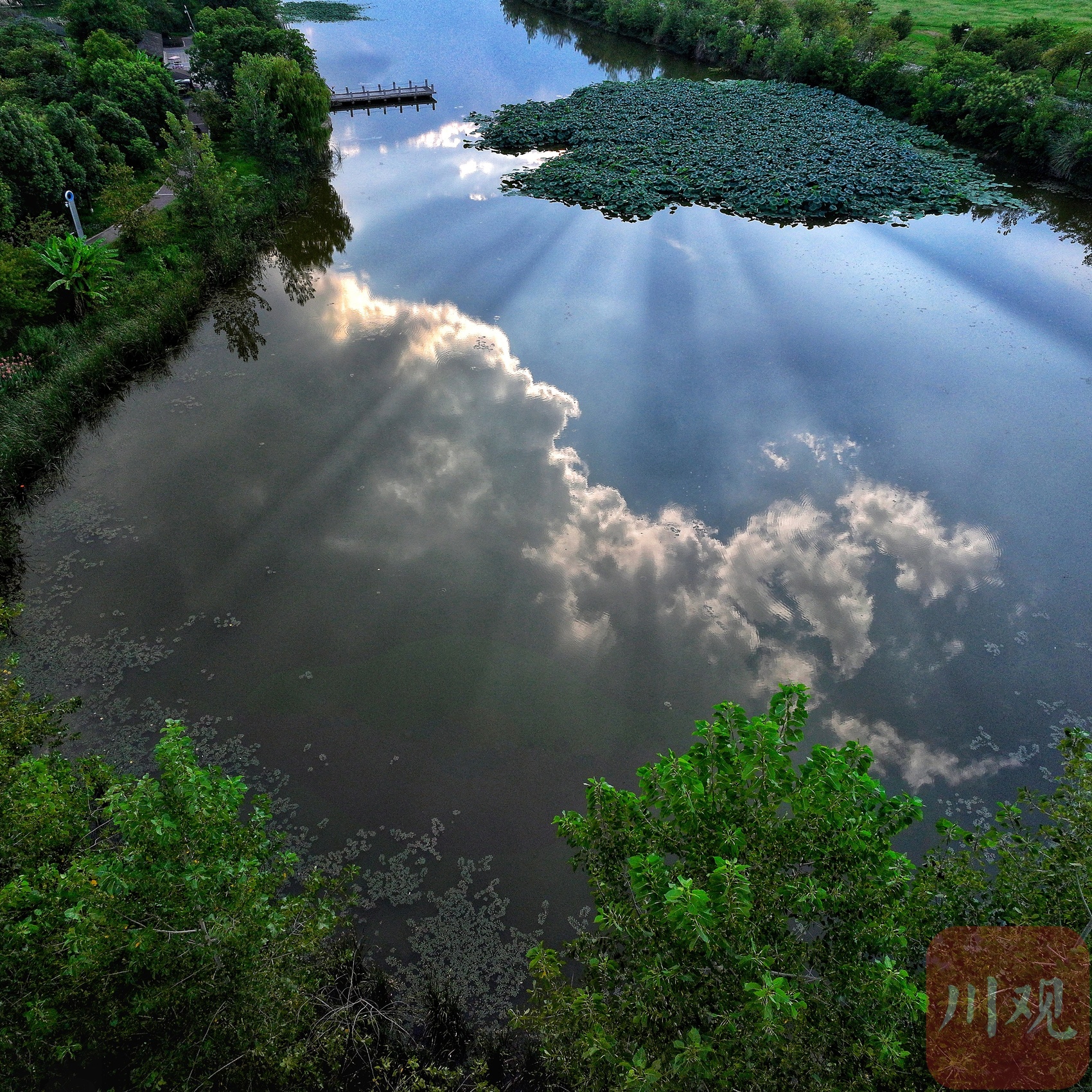 8月26日傍晚,处暑后的成都青龙湖湿地公园迎来一场视觉盛宴。暮云舒展,湖面如镜,一束束丁达尔光穿透云层倾泻而下,与湖水倒影交织成水天一色。许多市民驻足绿道,用手机记录下这难得一见的都市初秋光影瞬间。