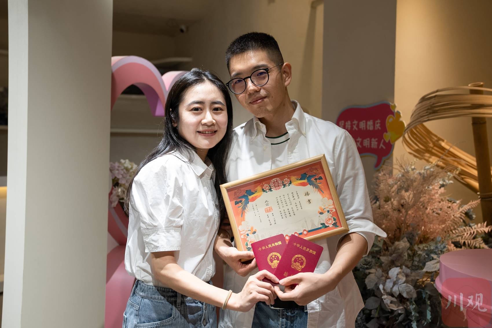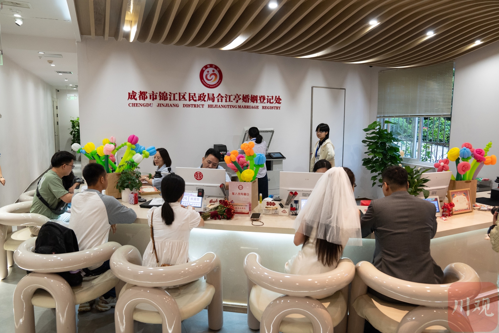 成都市锦江区合江亭婚姻登记处,前来领证的新人正在登记。