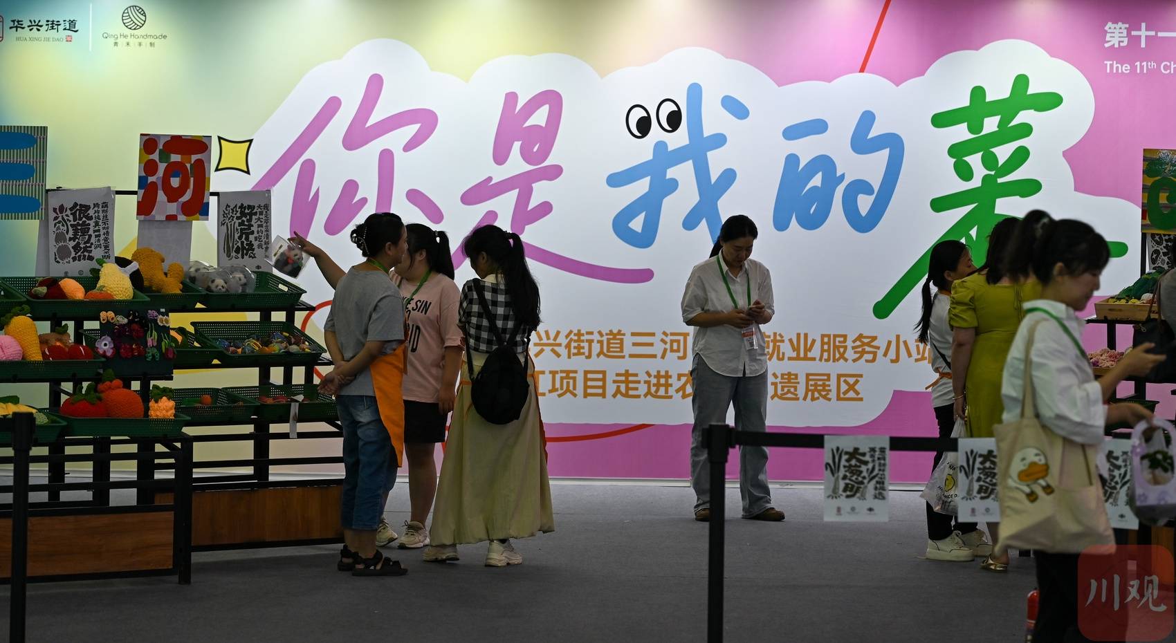 成都武侯区华兴街道三河社区的手工制品在展出。