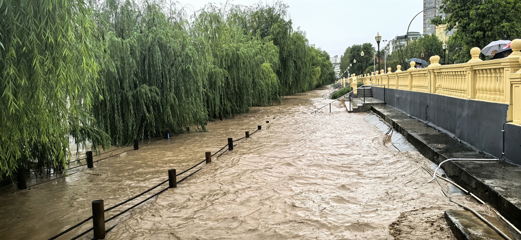 9月5日上午,广元市区洪水已漫过南河步行道。广元观察 高志农 摄