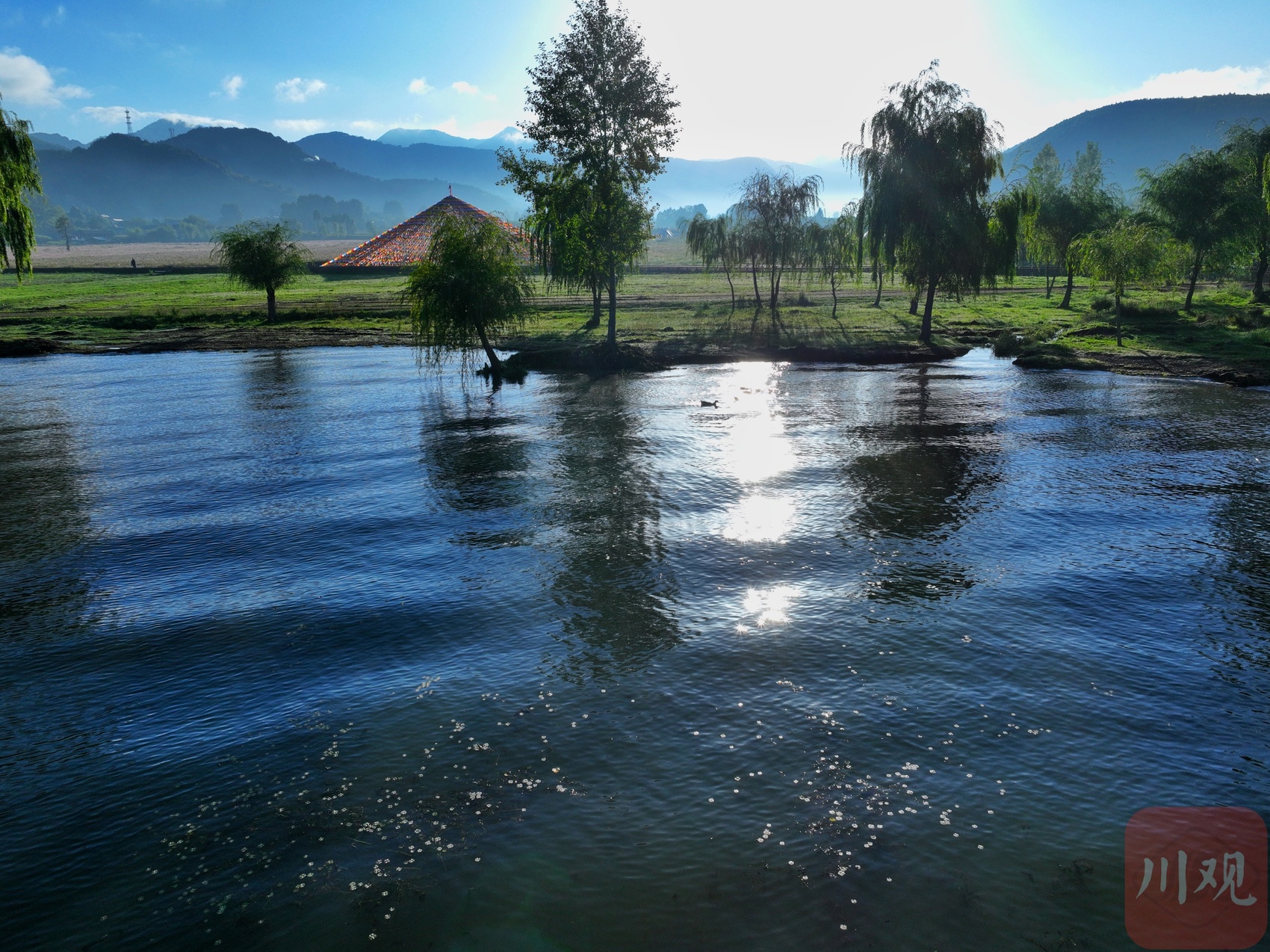 9月14日清晨,迎着初升朝阳的光芒,泸沽湖展露出动人景致。栈道旁的格桑花沾满朝露,在逆光的晨风中摇曳,尽显灵动;微波荡漾的湖面上,几只野鸭缓缓游弋,悠然自在。远处,晨光勾勒出树冠的轮廓,在晨雾与炊烟的映衬下,整片景致尽显水墨神韵,令早起观景的人们深深沉醉于这份自然之美。
