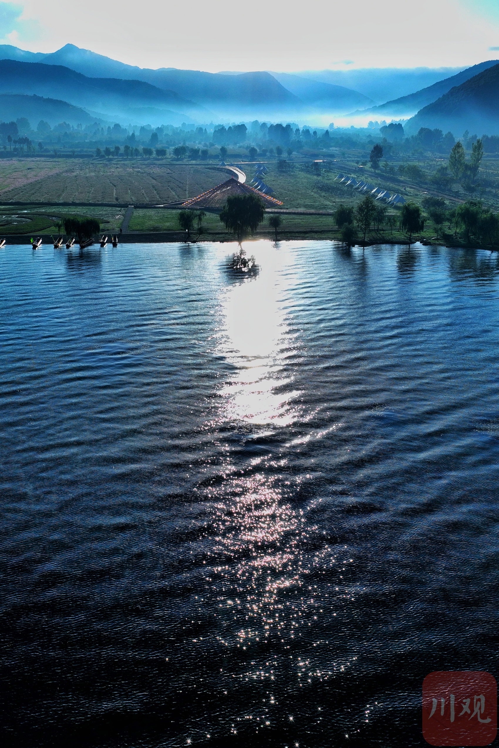 无人机展现泸沽湖晨曦一角。(请横屏观看)