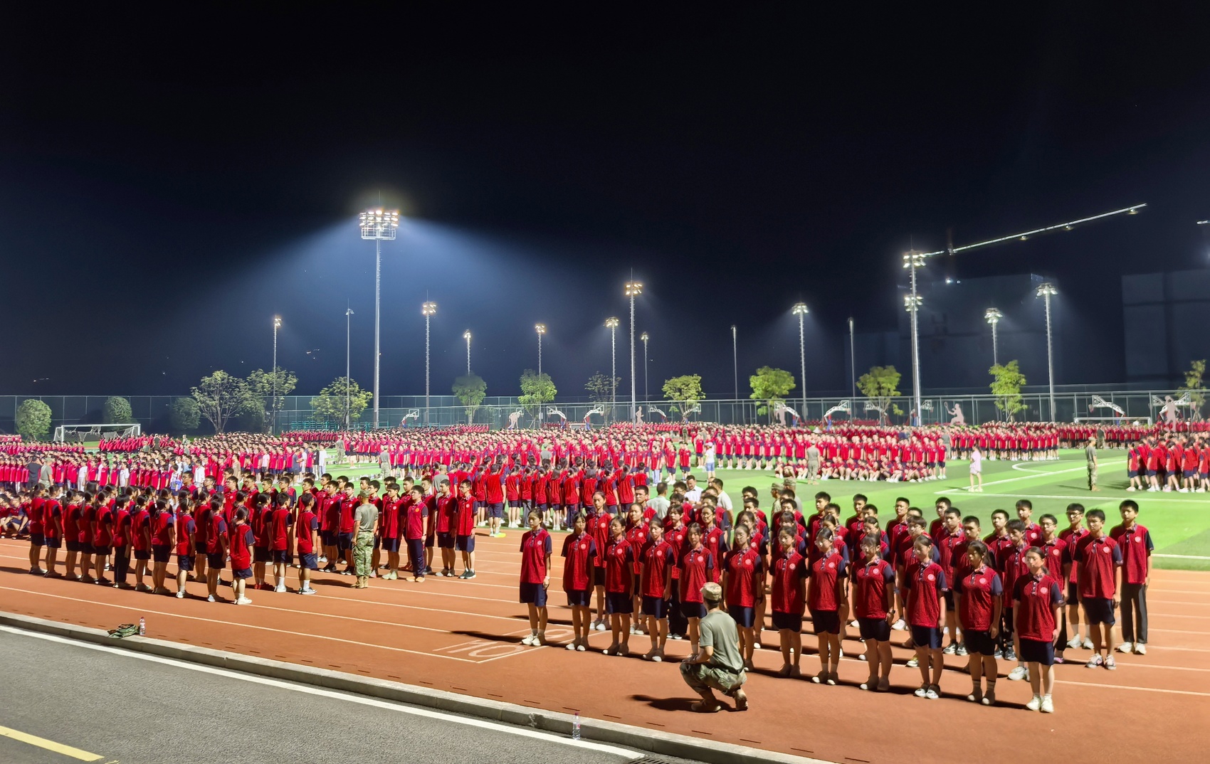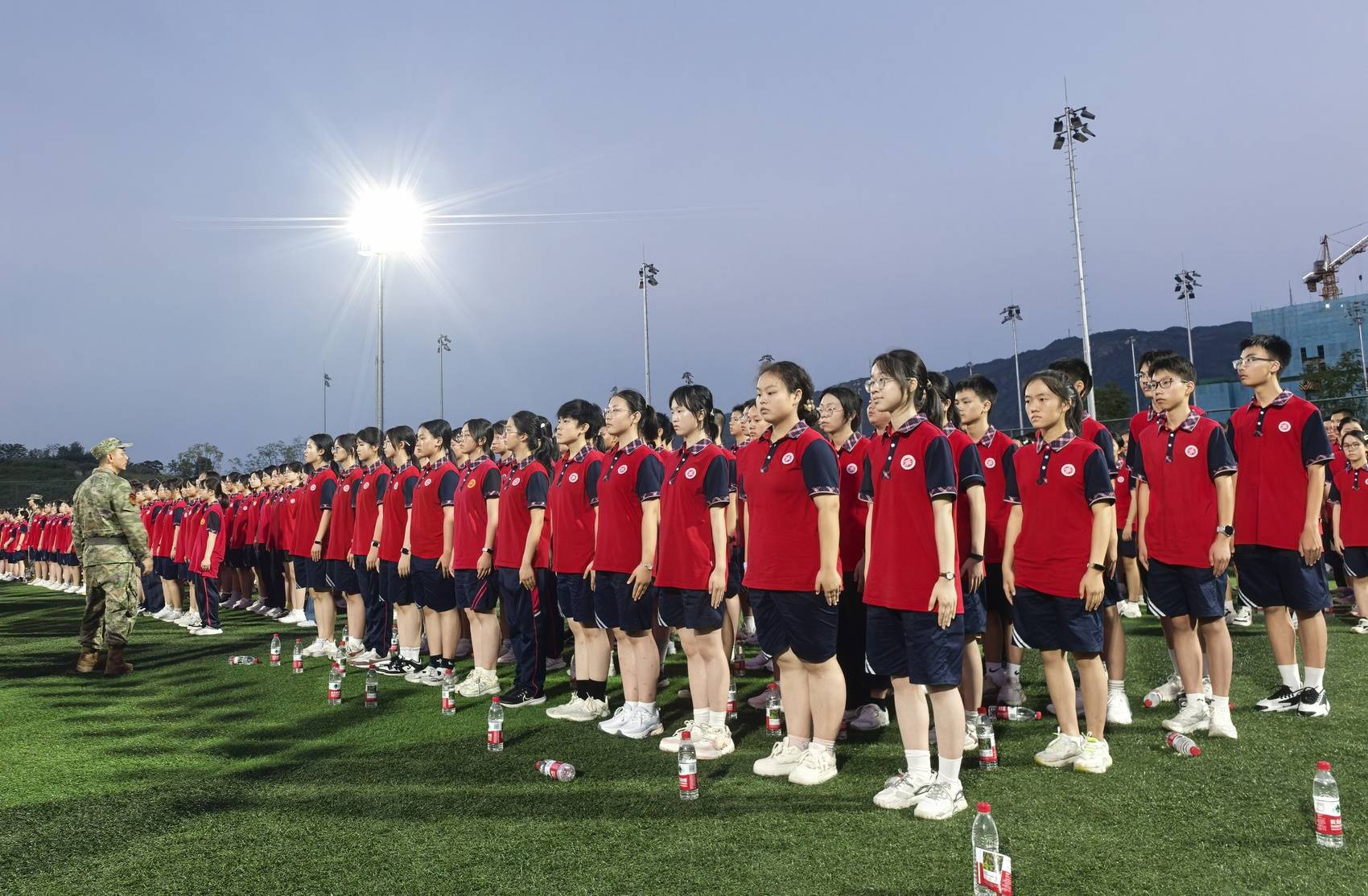 时值全民国防教育月,9月14日晚,宜宾市第一中学叙州校区运动场上青春气息涌动,高2024级、2025级学生军训开营仪式在此举行,3800余名学子身着校服、精神昂扬,以崭新面貌迎来高中阶段这堂特殊的“淬炼课”。