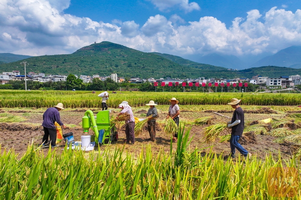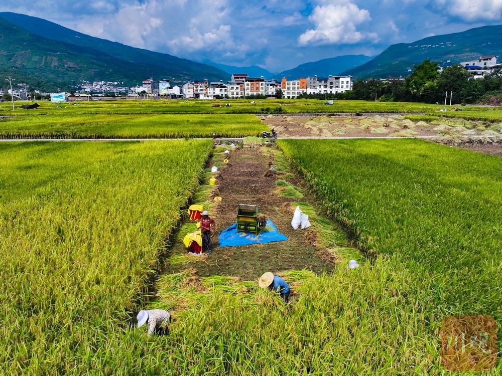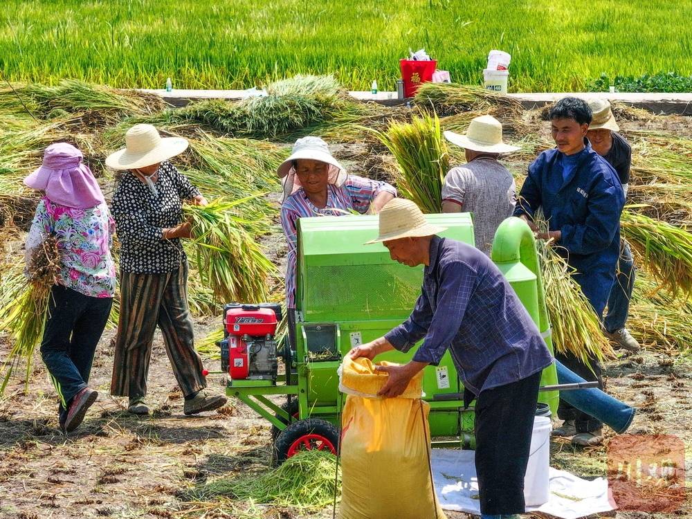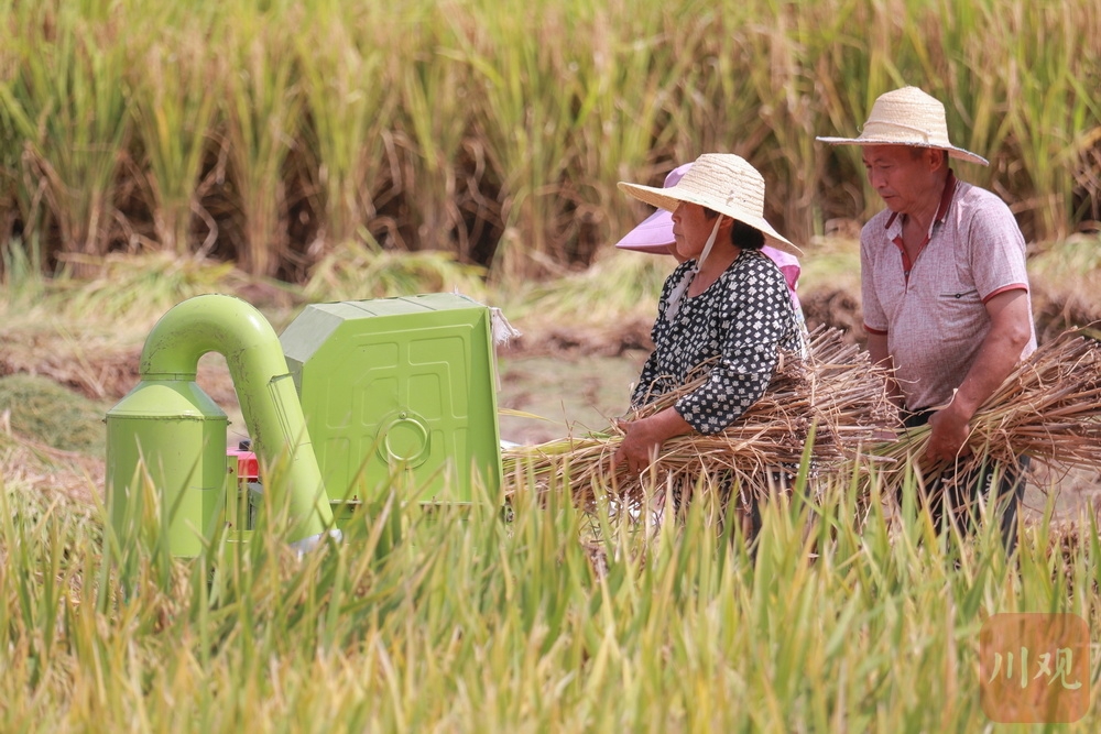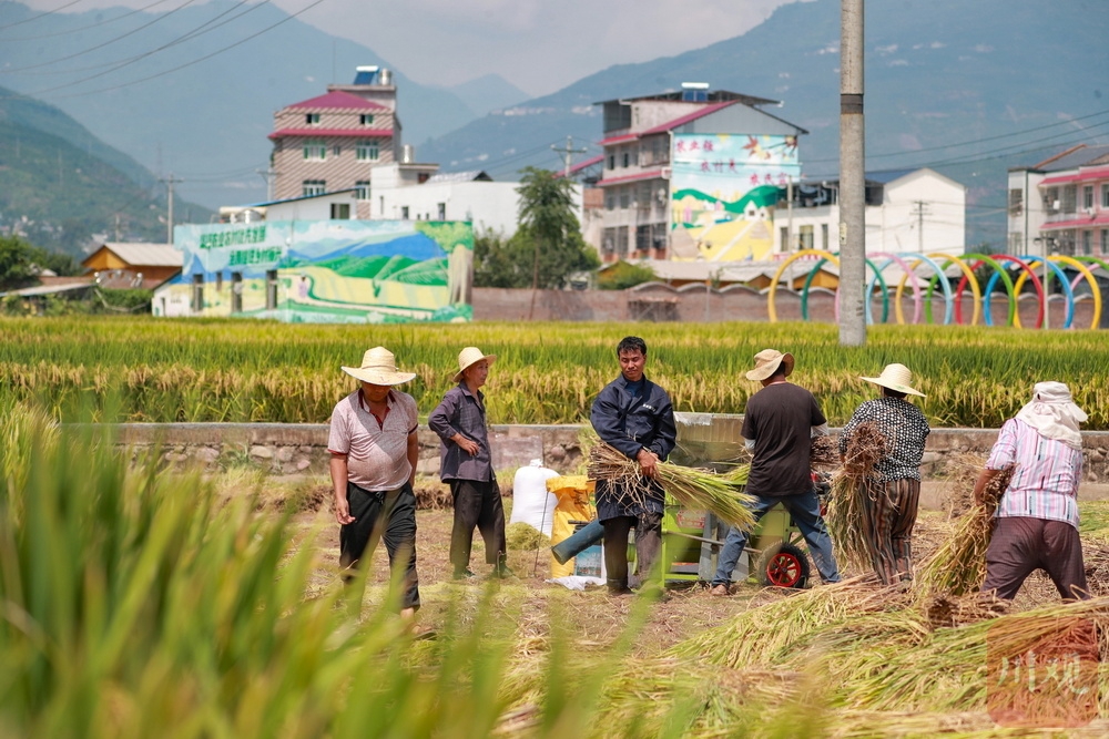 9月15日,走进雅安市汉源县九襄、前域等乡镇,流沙河沿岸的粮经复合现代农业园区内,沉甸甸的稻穗随风摇曳,掀起层层金色稻浪。在灿烂的阳光照射下,村民们正抢抓农时收割水稻,一派忙碌的丰收景象。