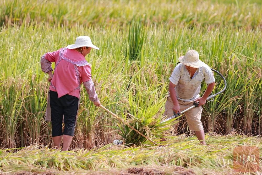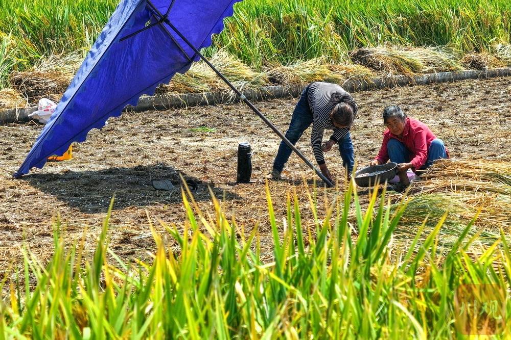 与此同时,之前已完成水稻收割的田间,不少村民已开始抢种大蒜。钉窝、种蒜、盖秸秆……再次播下丰收的种子。