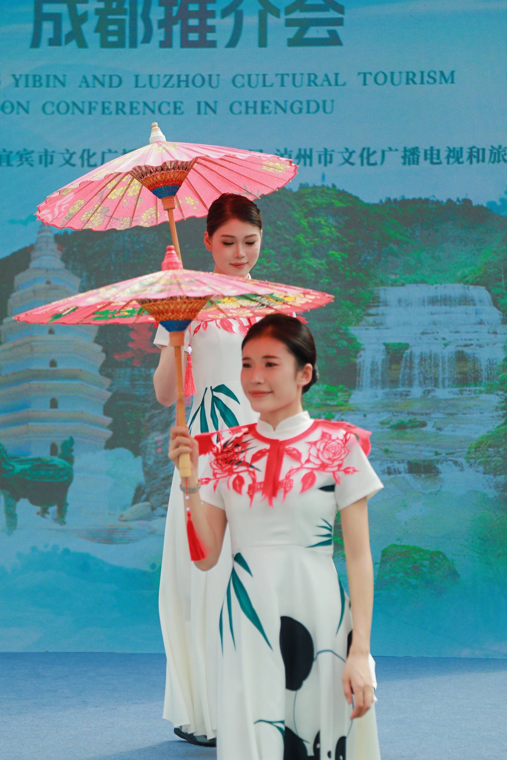 “好精致的剪纸!”“这油纸伞转起来真好看!”9月16日下午,成都宽窄巷子游人如织,“锦绣天府·安逸四川”——“来宜泸·耍一路”2025宜宾、泸州文旅成都推介会在此拉开帷幕。随着开场秀《宜泸风情》上演,一场融合川南韵味的文化走秀惊艳亮相,既是“行走的非遗展演”,更让川南风情与蓉城烟火气激烈碰撞,引得过往游客纷纷驻足,举起手机记录精彩瞬间。