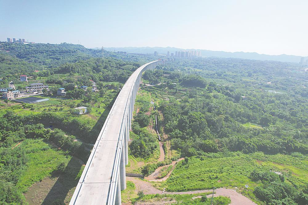 成渝中线高铁是我国“八纵八横”高铁网沿江通道的重要组成部分,自重庆枢纽重庆北站起,向西经重庆市渝北区、沙坪坝区、璧山区、铜梁区、大足区,四川省资阳市、成都市,引入成都枢纽成都站,正线全长292公里。成渝中线建成后,成渝两地旅行时间进一步压缩,将极大便利沿线人民群众出行,对助力成渝地区双城经济圈建设,形成西部大开发新格局具有十分重要的意义。