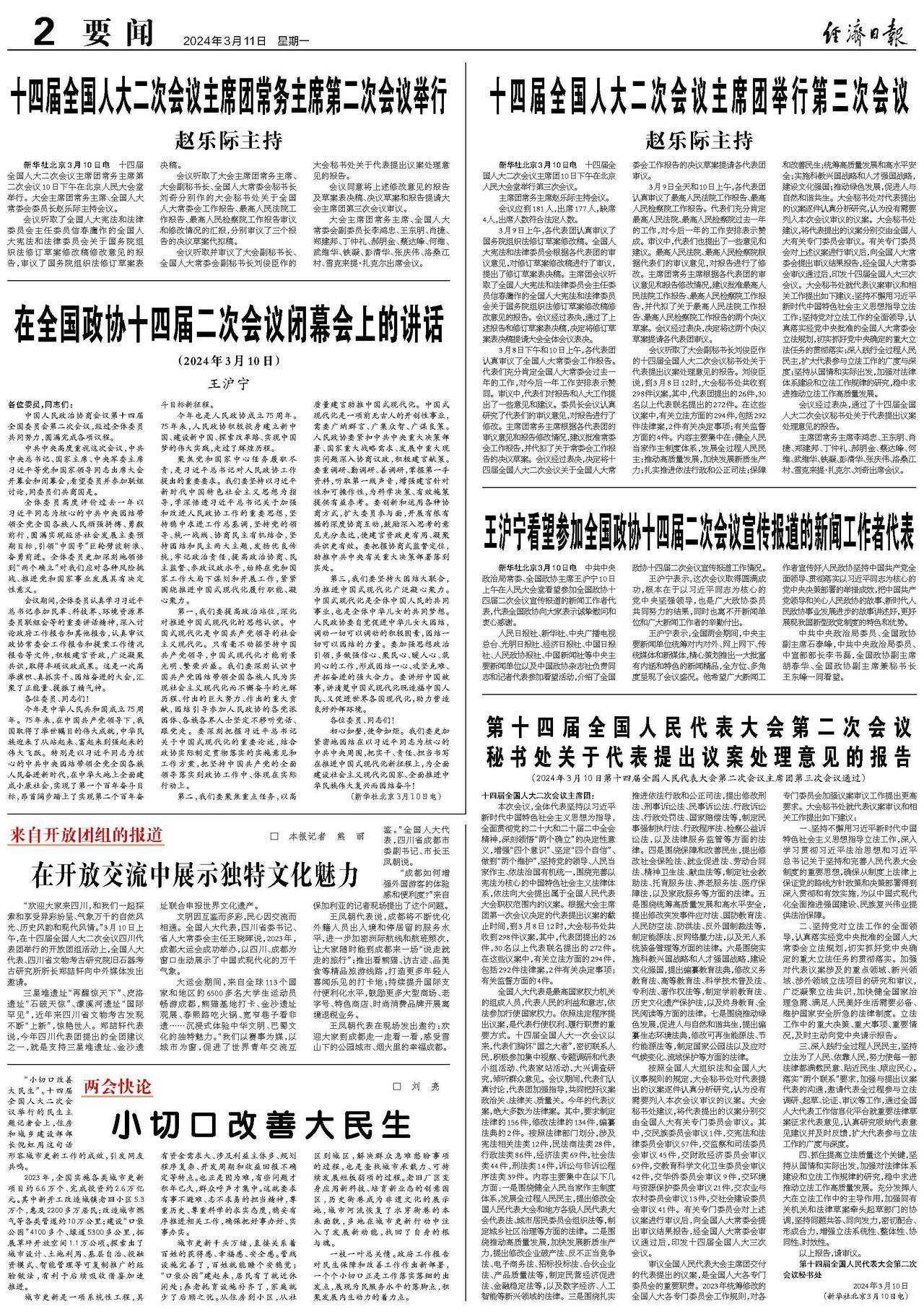 “欢迎大家来四川,和我们一起探索和享受异彩纷呈、气象万千的自然风光、历史风韵和现代风情。”3月10日上午,在十四届全国人大二次会议四川代表团举行的开放团组活动上,全国人大代表、四川省文物考古研究院旧石器考古研究所所长郑喆轩向中外媒体发出邀请。