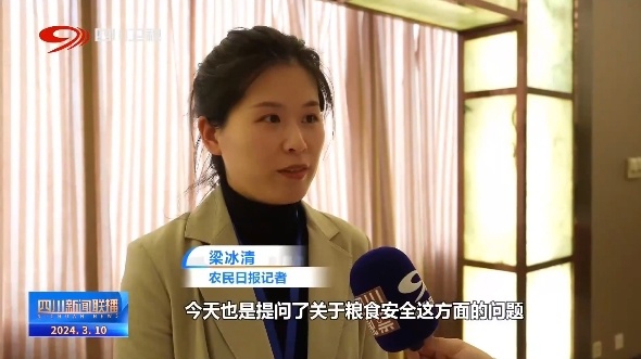 农民日报记者 梁冰清:今天也是提问了关于粮食安全这方面的问题,然后代表给我的回答,也是让我觉得对咱们中国的粮食安全特别有信心。他中间也提到了有一些关于良种的,还有高标准农田补贴的以及农机的(内容),特别是农业机械化这一年来推进的增长增幅达到了百分之十几,让我觉得特别地振奋,也希望四川能越来越好。