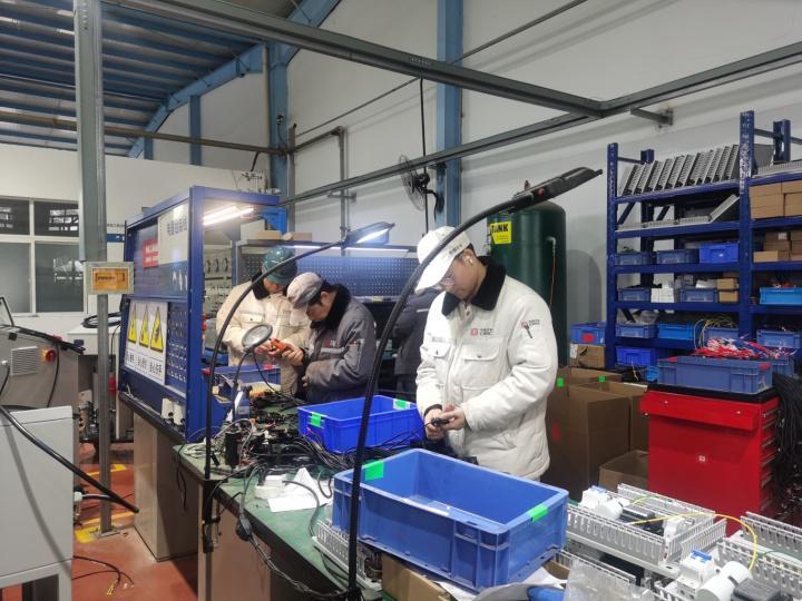 公司铆接设备生产车间,工人们正在抓紧生产。