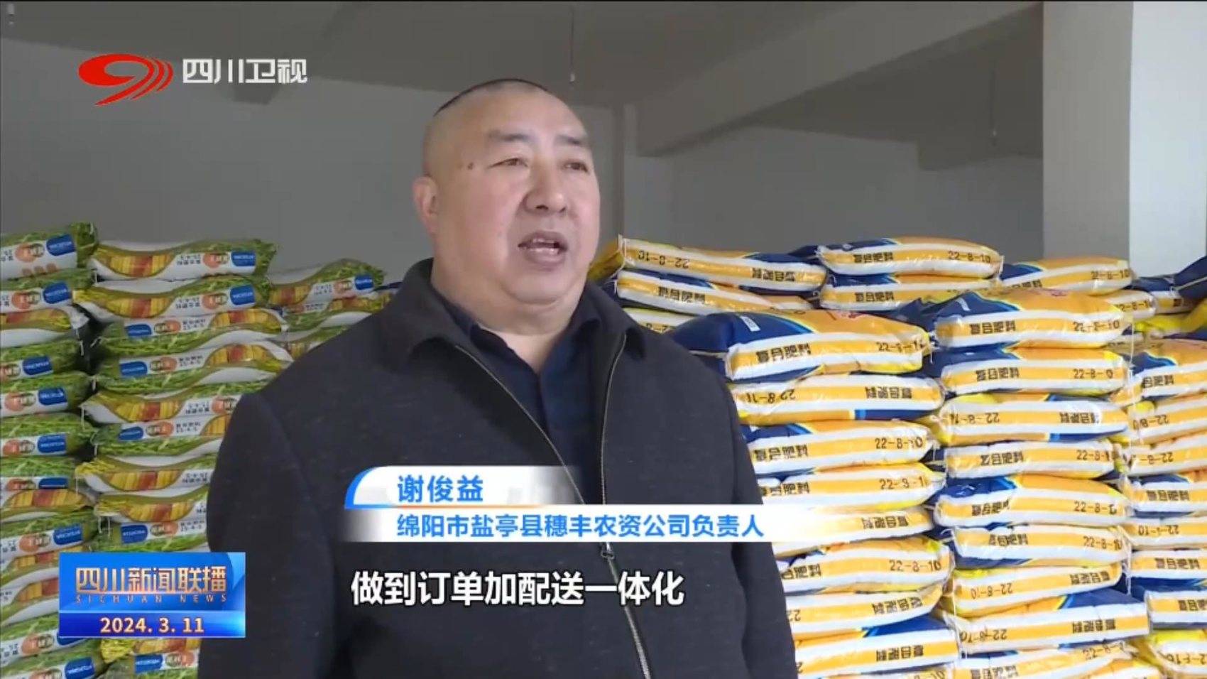 绵阳市盐亭县穗丰农资公司负责人 谢俊益:我们储备了充足的肥料,利用现有的现代化的物流配送体系,做到订单加配送一体化,服务到村、到农户。