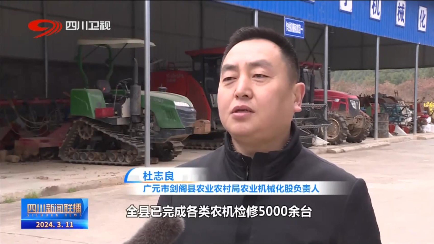 广元市剑阁县农业农村局农业机械化股负责人 杜志良:截至目前,全县已完成各类农机检修5000余台,全力让农机恢复到最佳状态,为春耕工作奋力完成提供有力保障。