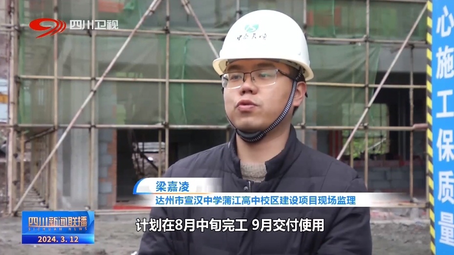达州市宣汉中学蒲江高中校区建设项目现场监理 梁嘉凌:我们将继续加大人力物力投入,计划在8月中旬完工,9月交付使用。