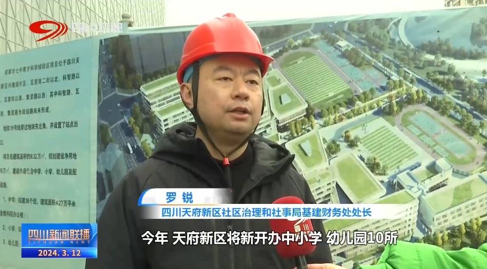 四川天府新区社区治理和社事局基建财务处处长 罗锐:今年,天府新区将新开办中小学、幼儿园10所,提供学位1.1万个。这些学校建成后,将扩大优质教育资源覆盖面,加速提升天府新区教育公共服务质量和水平。