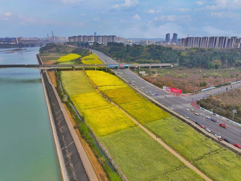 3月25日,记者走进位于乐山高新区大渡河、龙溪河流域的耕地恢复种植区域看到,曾经的闲置撂荒土地,如今成了种满农作物的良田,油菜花香迎风拂来,吸引广大市民前来拍照打卡。