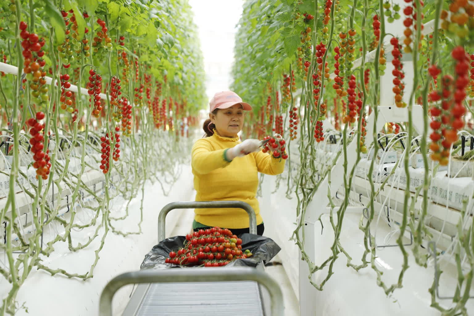 “我们通过与法国、荷兰等农业公司技术合作,为温室安装了一套智能控制系统和设备。”江敏表示,设备收集外界空气中的二氧化碳,智能控制系统再根据小番茄生长需要,通过白色风筒补充到温室内,再通过光合作用转换成小番茄的“一日三餐”,从而实现“碳中和”“碳利用”。