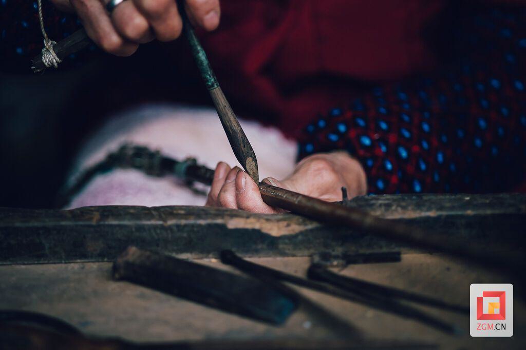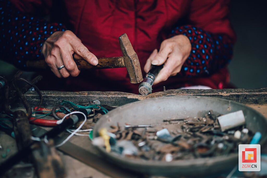 剪锌皮包镶秤头 记者 宋姿熠 摄
