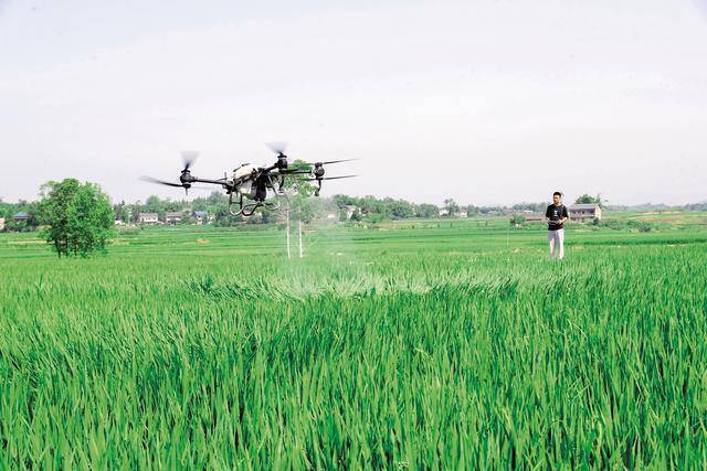 宋辉操控无人机进行水稻病虫害防治。(资料图片)