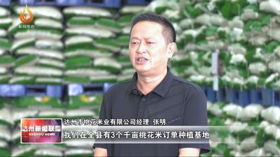 达州市桃花米业有限公司经理 张明:我们在全县有3个千亩桃花米订单种植基地,实行统一种植、收购、加工,批量化生产多规格、多价位的桃花米,年加工能力达4.5万吨。